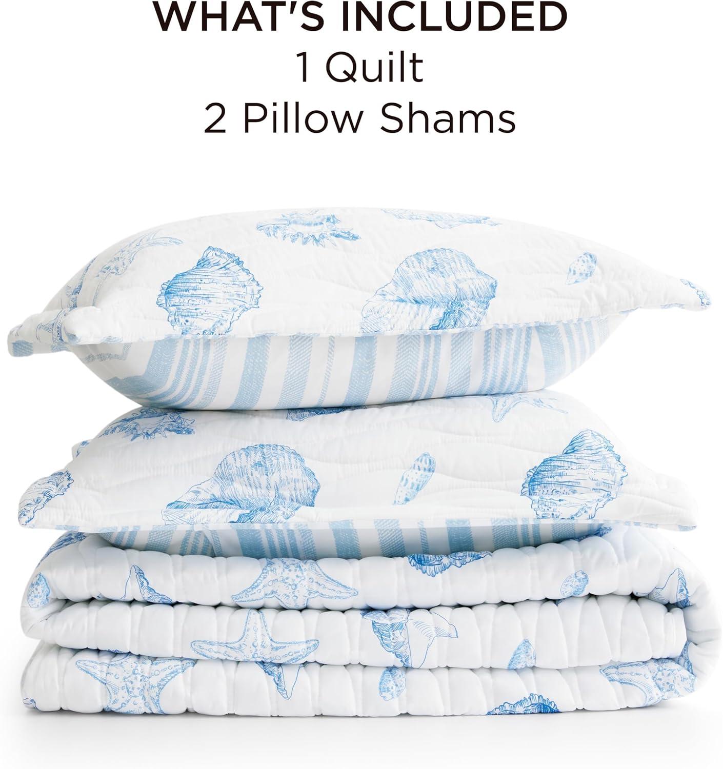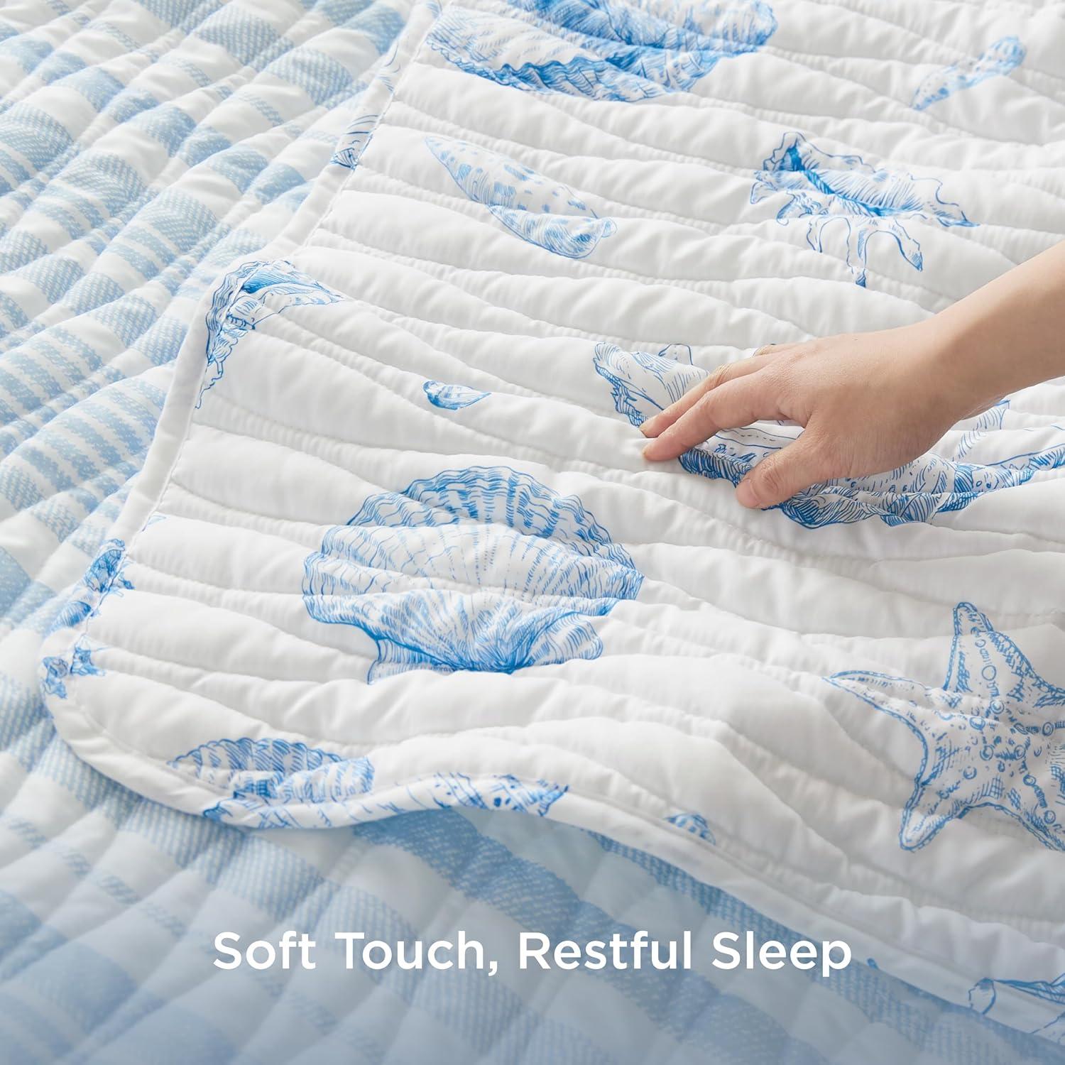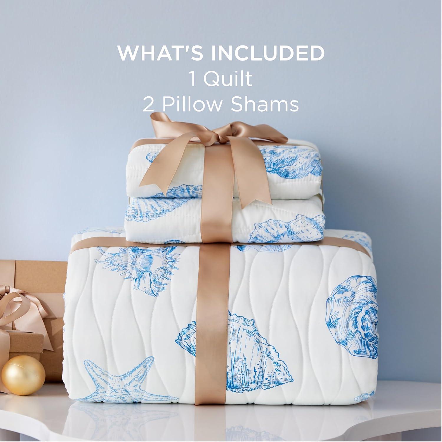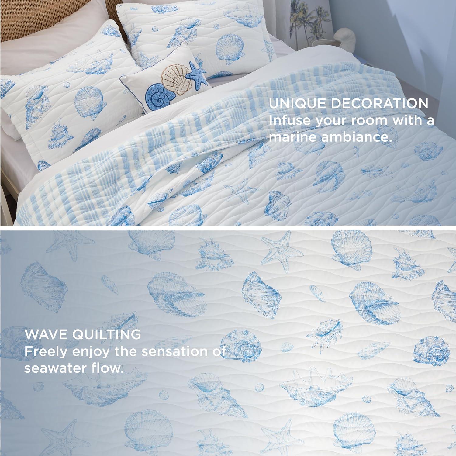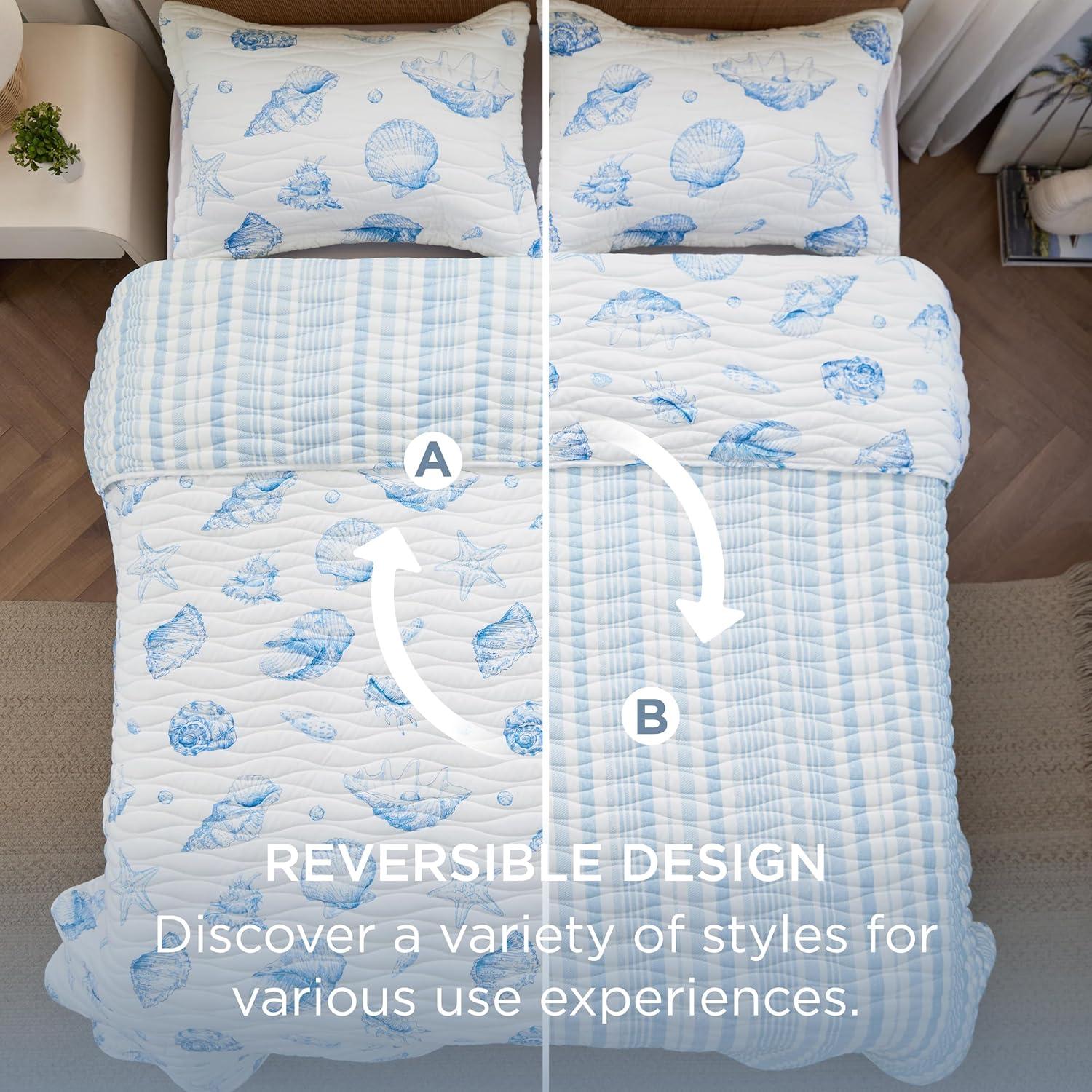 imageBedsure Floral Quilt Set Queen  Reversible Olive Green Botanical Quilt Bedding Set 3 Pieces Lightweight Bedspread Soft Microfiber Coverlet with 2 Pillow Shams for All Seasons 90quotx96quot03  Ocean Shells