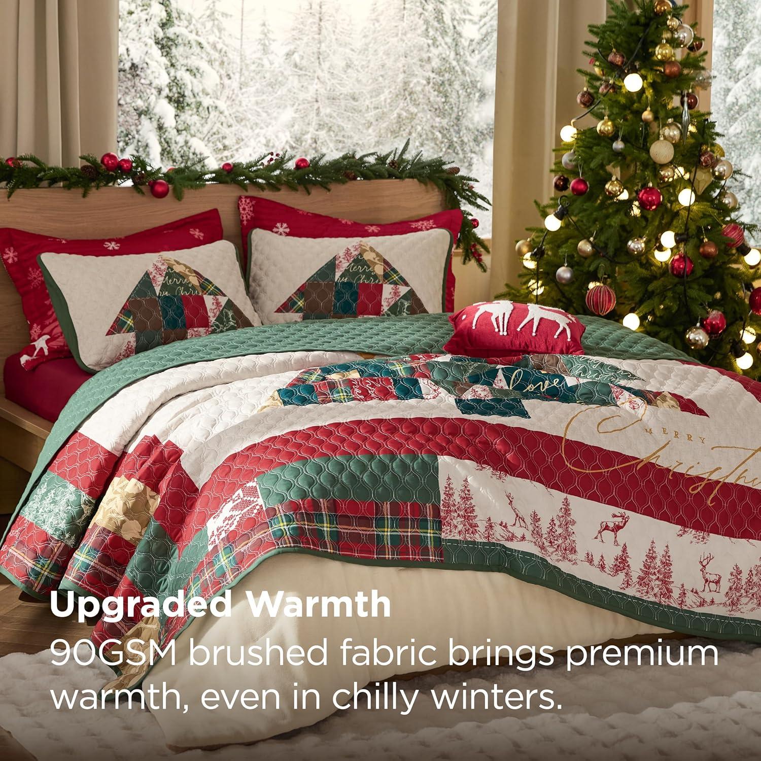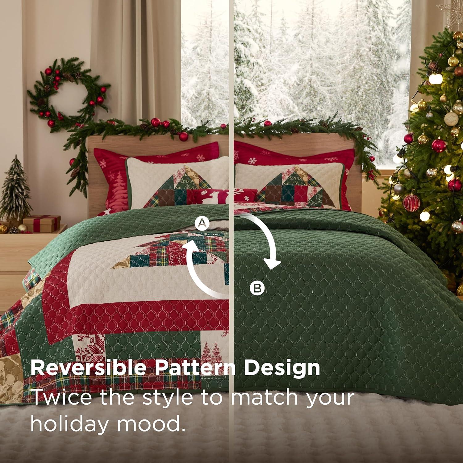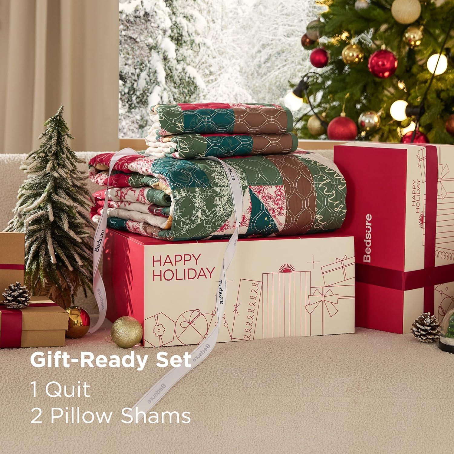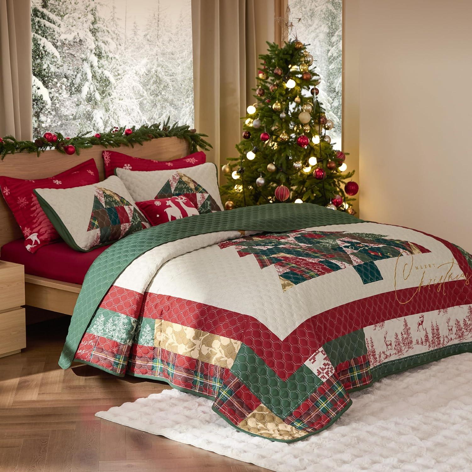 Bedsure Floral Quilt Set Queen – Reversible Olive Green Botanical Quilt Bedding Set, 3 Pieces Lightweight Bedspread, Soft Microfiber Coverlet with 2 Pillow Shams for All Seasons (90″x96″)(25 – Christmas Tree)