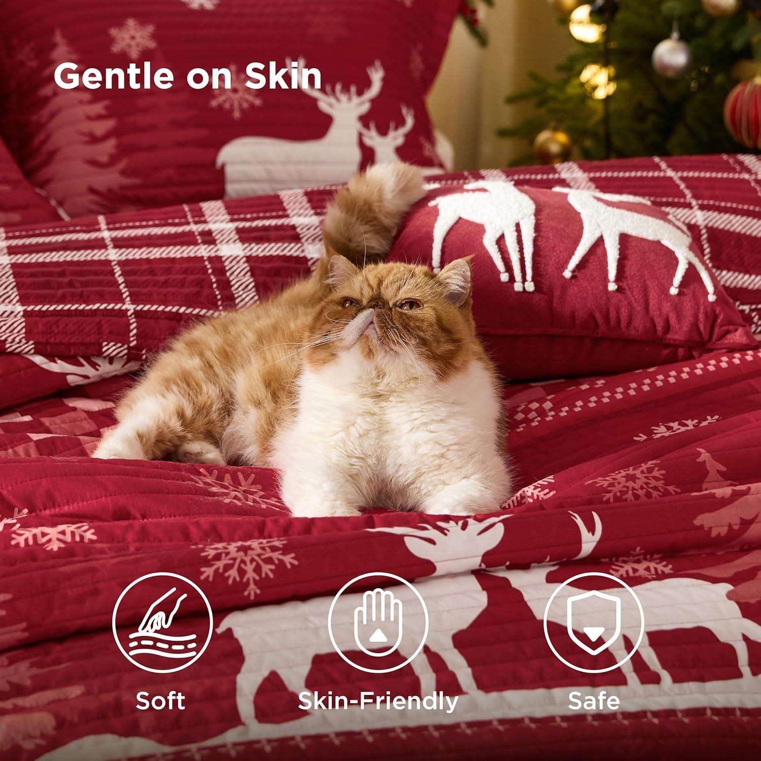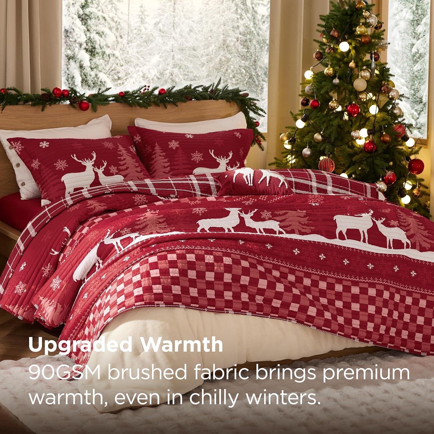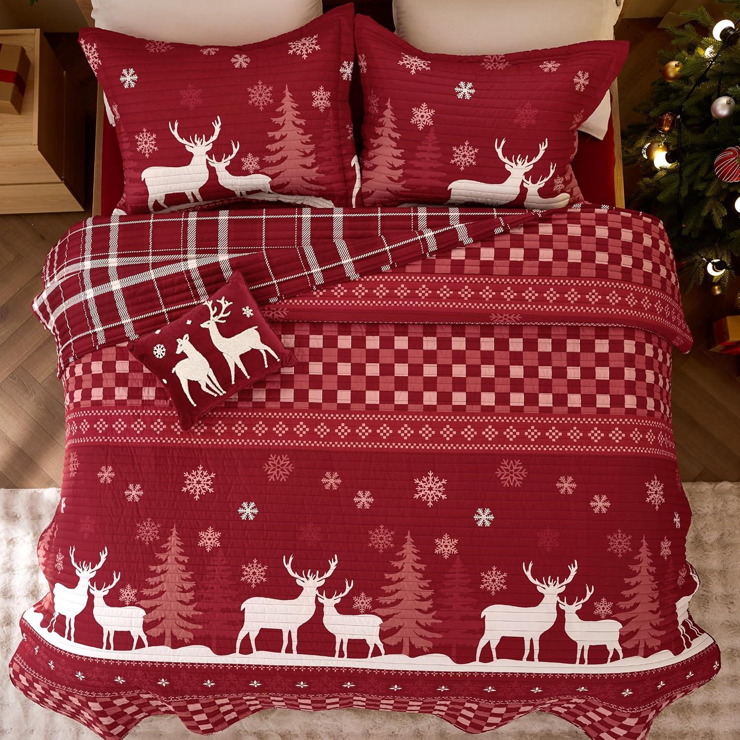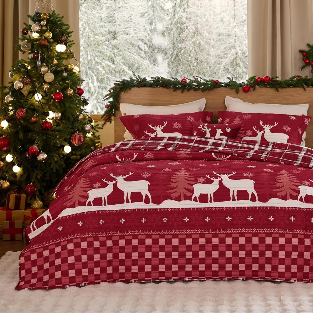 Bedsure Floral Quilt Set Queen – Reversible Olive Green Botanical Quilt Bedding Set, 3 Pieces Lightweight Bedspread, Soft Microfiber Coverlet with 2 Pillow Shams for All Seasons (90″x96″)(27 – Christmas Reindeer)