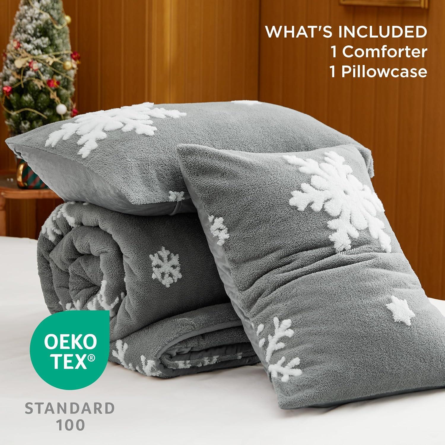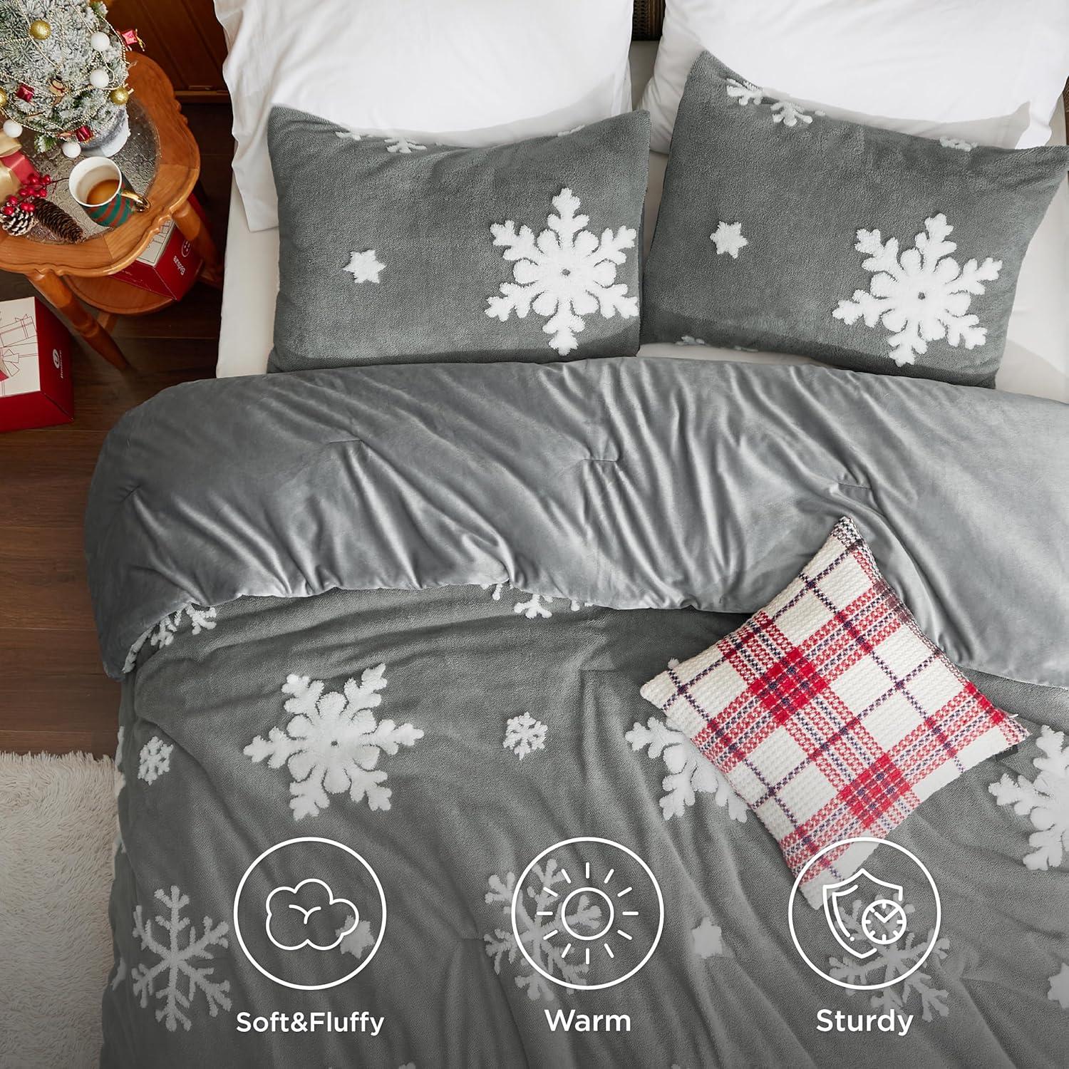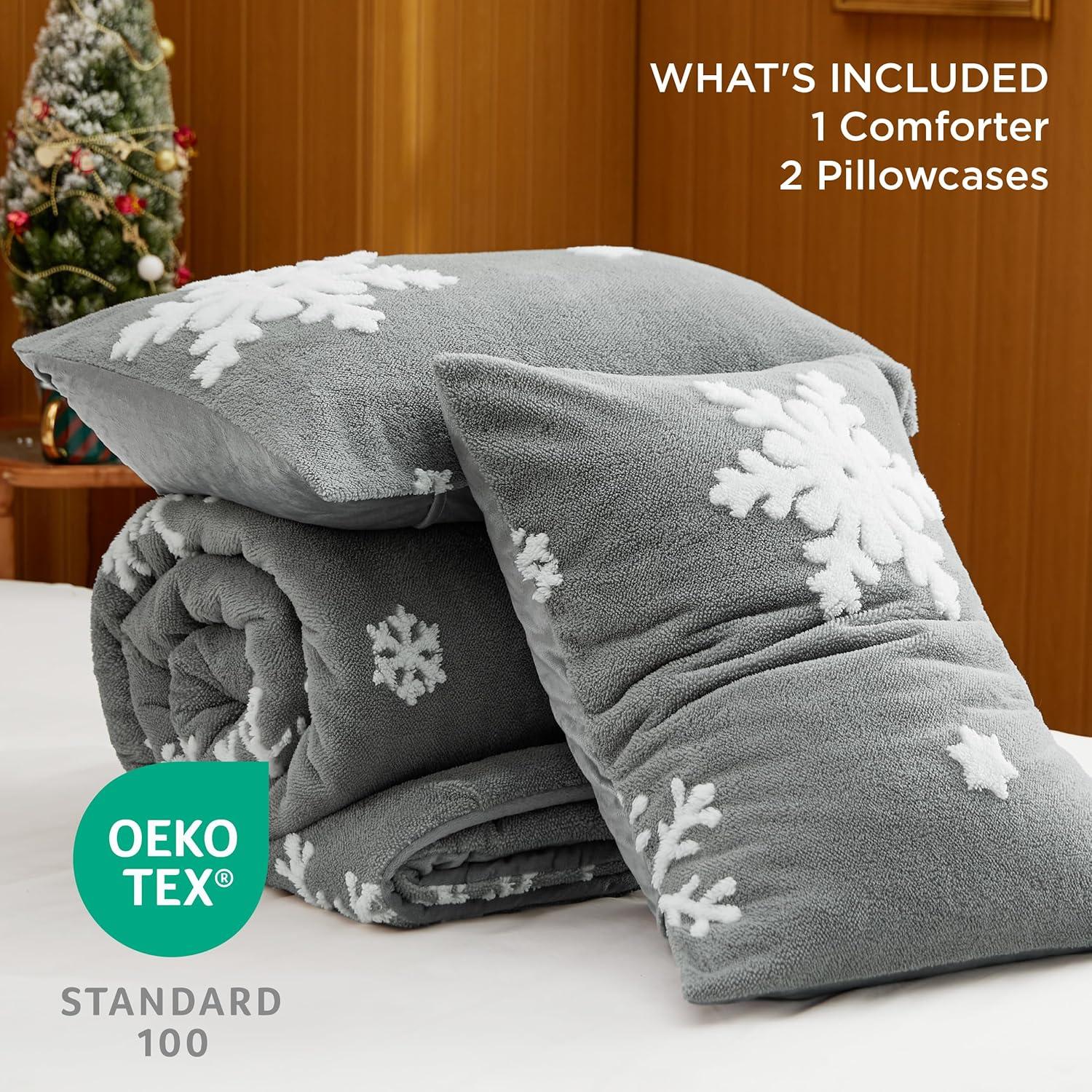 Bedsure Fluffy Christmas Comforter Set Queen - Red Christmas Bedding with Candy Cane, Warm Fleece Bed Sets for Winter, 3 Pieces, 1 Soft Plush Shaggy Comforter with 2 Pillowcases(01 - Grey)
