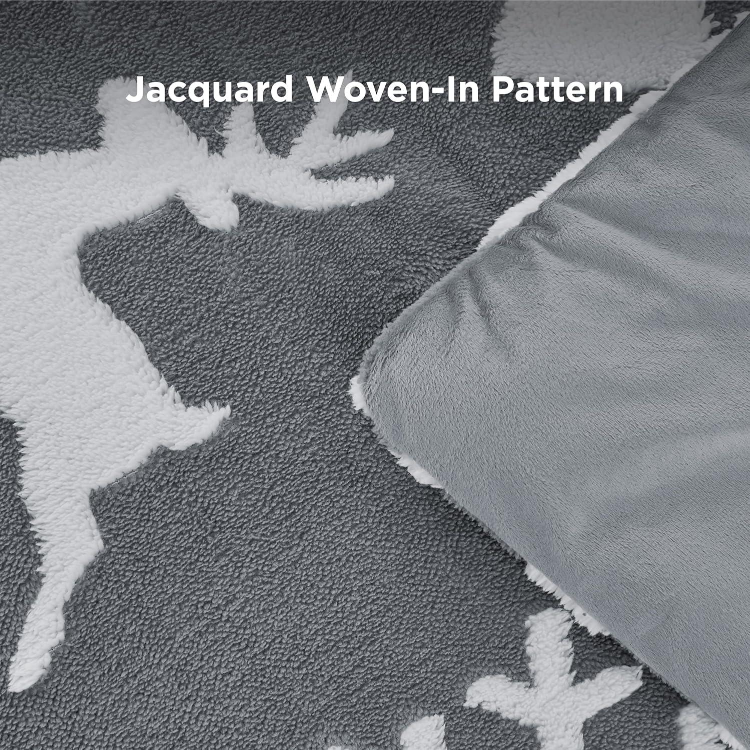 Bedsure Fluffy Christmas Comforter Set Queen - Red Christmas Bedding with Candy Cane, Warm Fleece Bed Sets for Winter, 3 Pieces, 1 Soft Plush Shaggy Comforter with 2 Pillowcases(02 - Grey Deer)