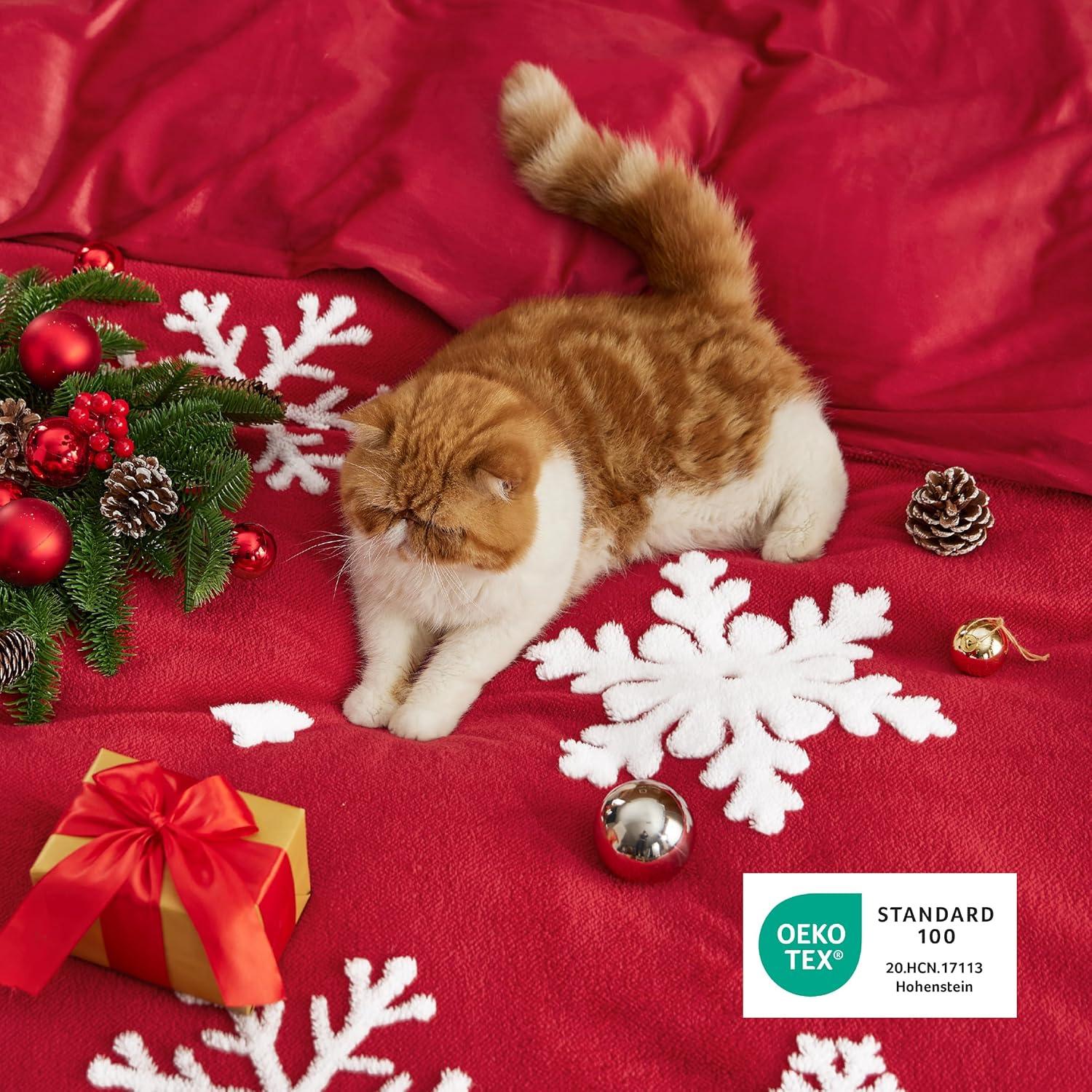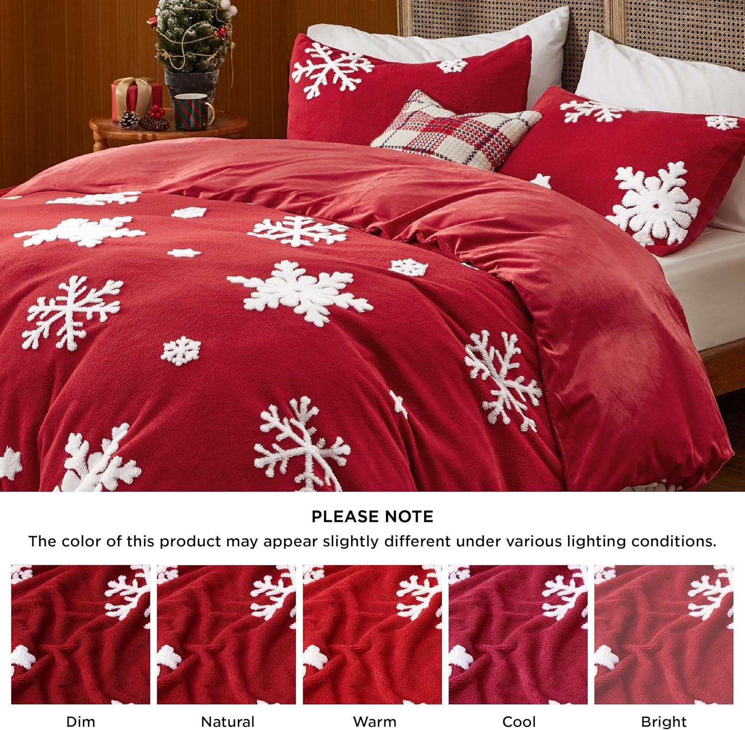 Premium Comfort: Crafted from high-quality sherpa fleece, this duvet cover set offers a luxurious soft touch and warmth. The comfortable fabric ensures a plush and inviting sleep environment, ideal for snuggling up on cold winter nights. Festive Christmas Prints: The intricate Christmas-themed jacquard patterns add a touch of festive elegance to your decor, making it a perfect centerpiece for your bedroom during the holiday season. Giftable: This fleece duvet cover set makes an ideal Christmas gift, combining practicality with festive cheer, perfect for spreading warmth and joy to friends and family. Thoughtful Details: Eight corner ties inside the duvet cover ensure a secure fit to prevent your duvet insert from bunching. The zipper design allows you to seal off your comforter more quickly and easily than with traditional button closures. Easy to care: This duvet cover set is easy to maintain. Simply machine washes in cold water on a gentle cycle, and tumble dry low for a like-new restoration. What You Get: This king 3-piece duvet cover set includes a duvet cover (90″ x 90″), two pillowcases (20″ x 26″).