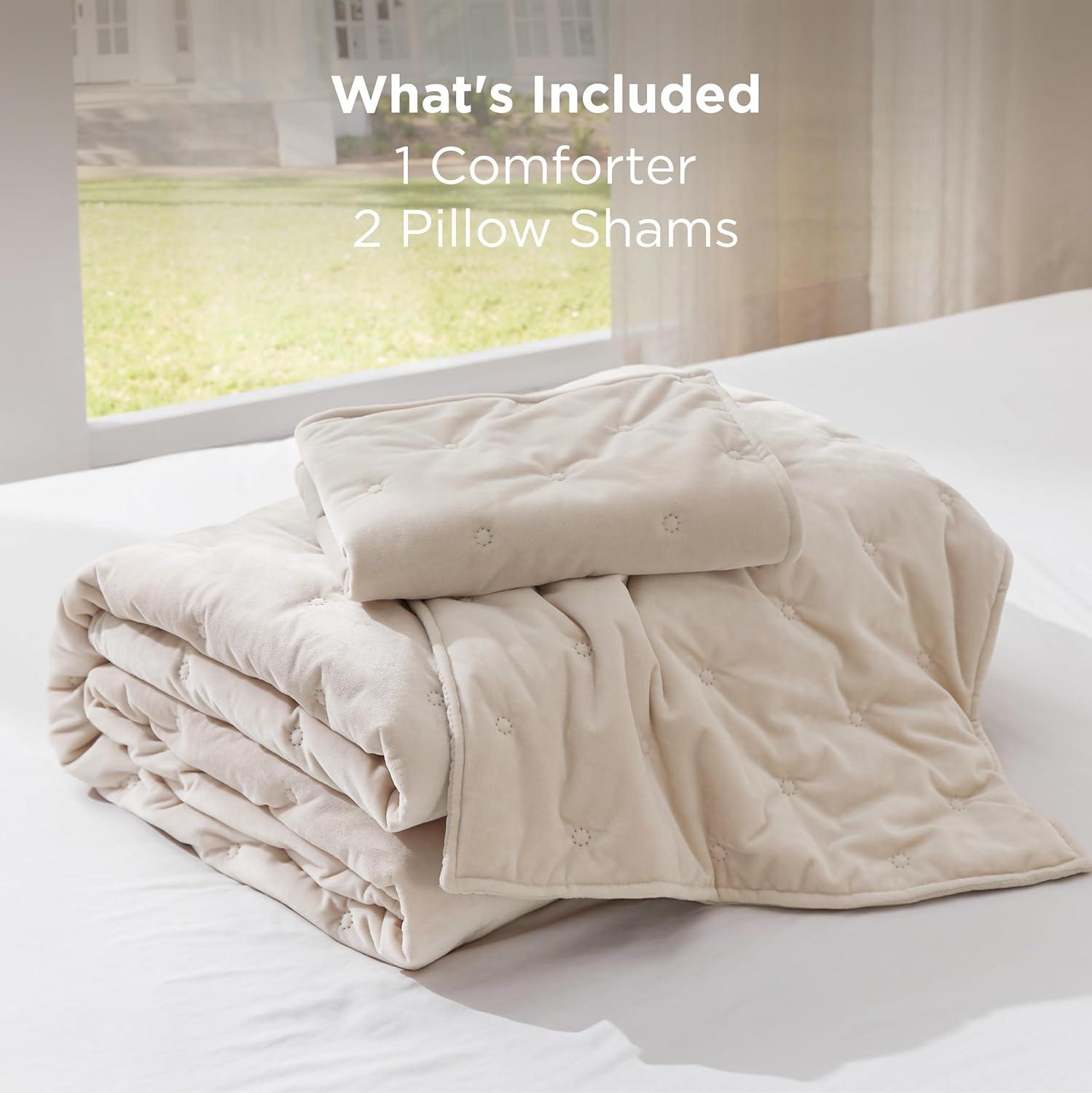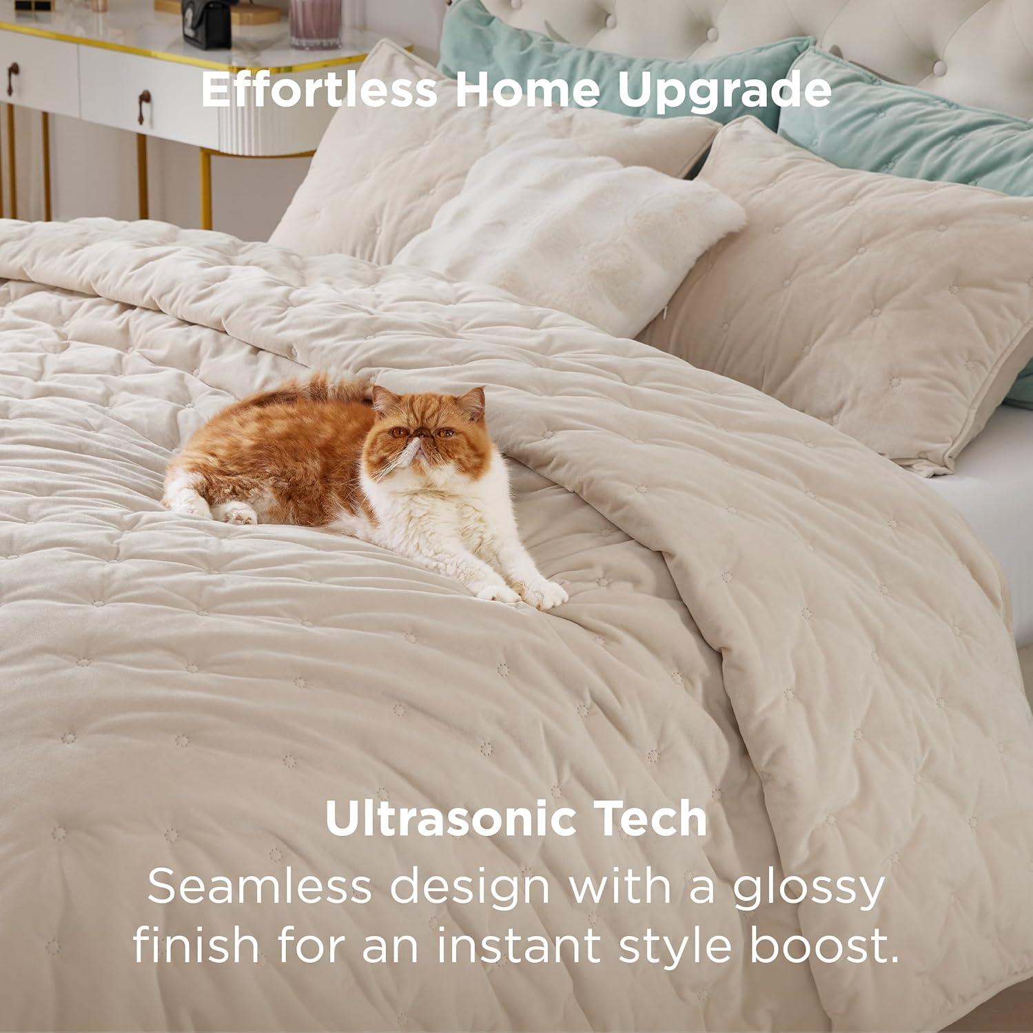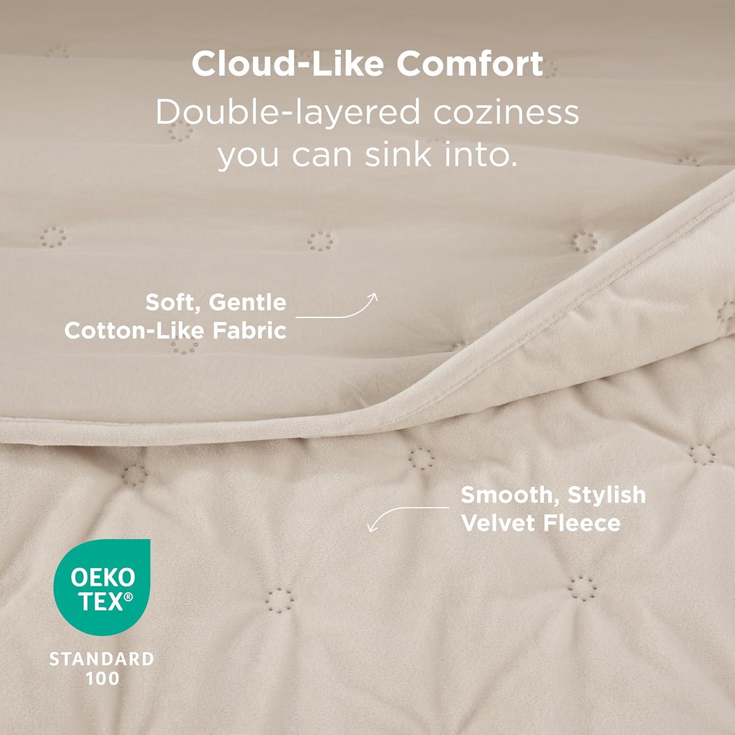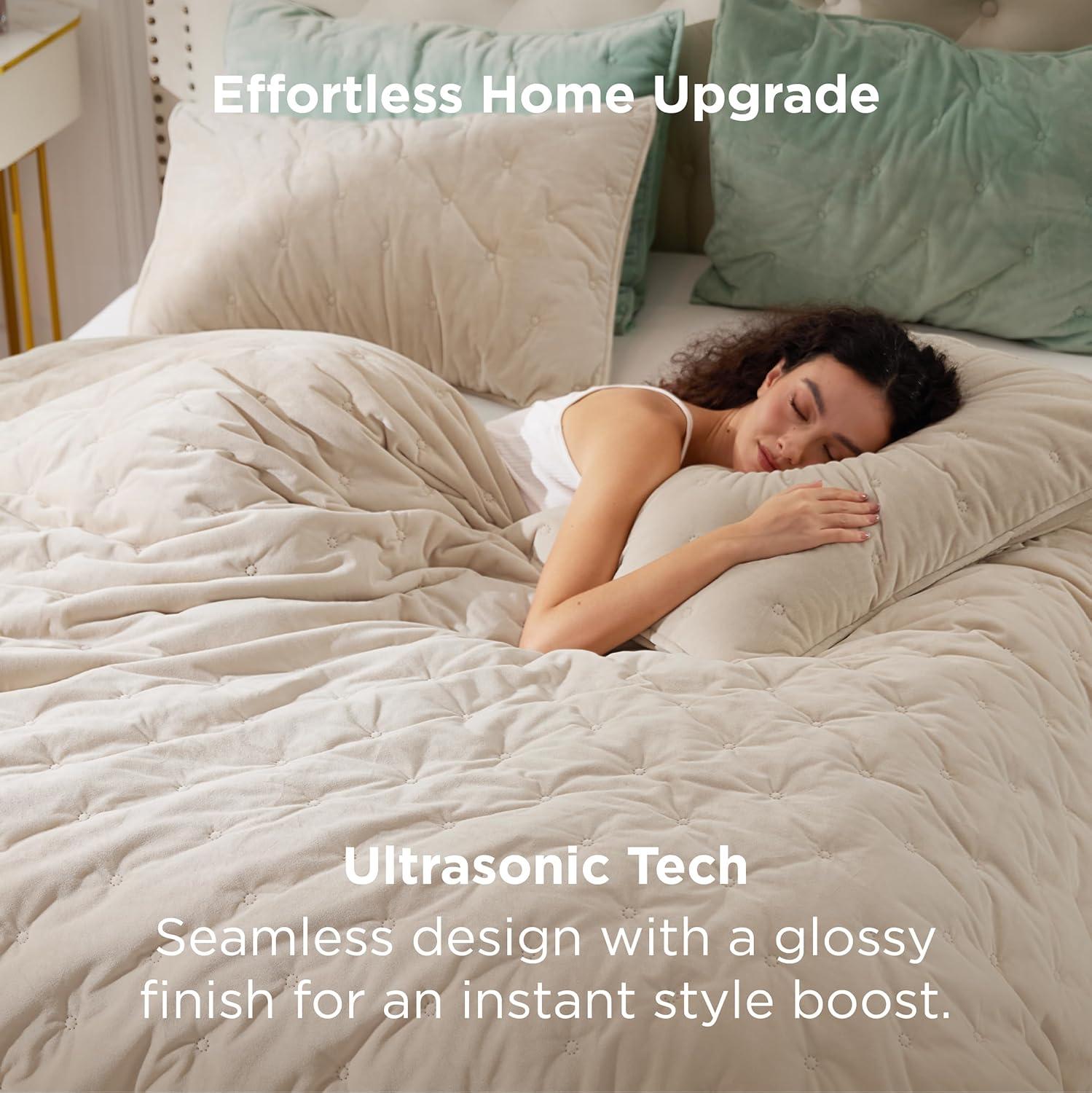 SOFT & PLUSH COMFORT: Crafted with luxurious velvet fleece and soft washed cotton-like fabric, this velvet comforter queen offers a silky touch and cloud-like coziness. The ultrasonic process creates a seamless, fluffy finish—no rough stitches—making it a Bedsure comforter ideal for sensitive skin and winter warmth with OEKO-TEX Standard 100 certification