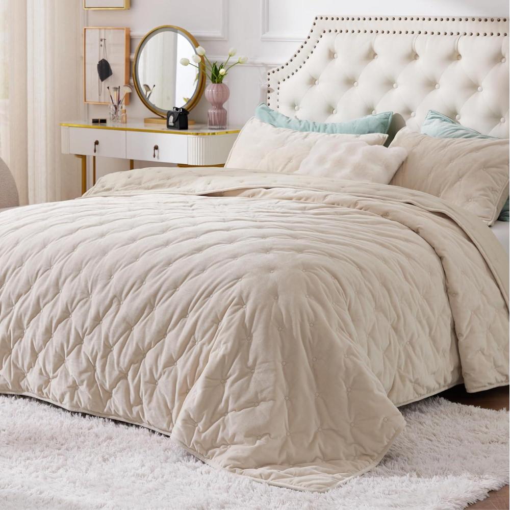 ELEGANT & VERSATILE DESIGN: With a smooth, non-stitched surface, this velvet bedspread blends natural sheen and textured pleats for a high-end look. Perfect for modern or cozy styles, it’s a timeless queen quilt bedding set that elevates any bedroom décor