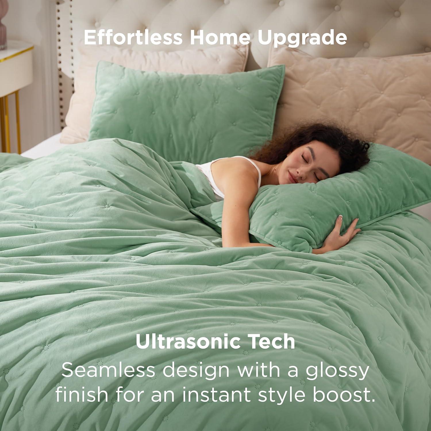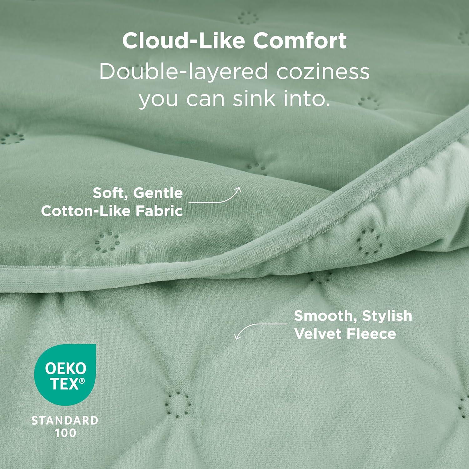 SOFT & PLUSH COMFORT: Crafted with luxurious velvet fleece and soft washed cotton-like fabric, this velvet comforter queen offers a silky touch and cloud-like coziness. The ultrasonic process creates a seamless, fluffy finish—no rough stitches—making it a Bedsure comforter ideal for sensitive skin and winter warmth with OEKO-TEX Standard 100 certification
