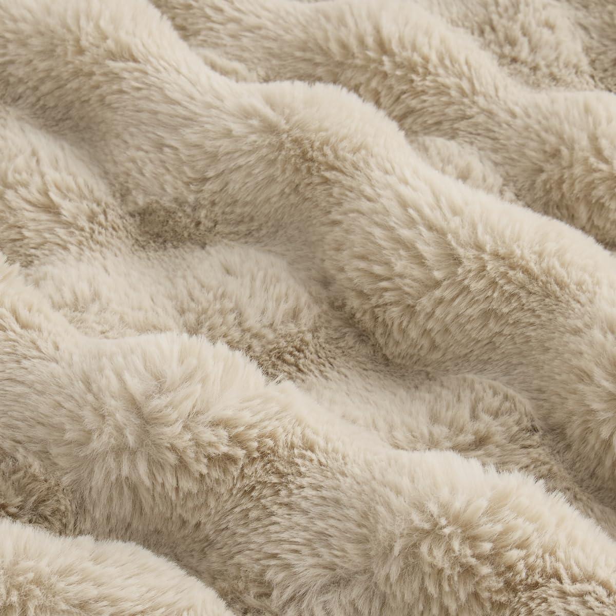 Dual-Texture Comfort: The sleeping side is crafted from solid-color ultra-soft microfiber, providing a smooth, warm surface that is gentle against the skin, perfect for a cozy night's sleep. The other side is made from carved vegan fur, delivering an exceptionally plush and soft texture that adds a luxurious feel to your bedding.