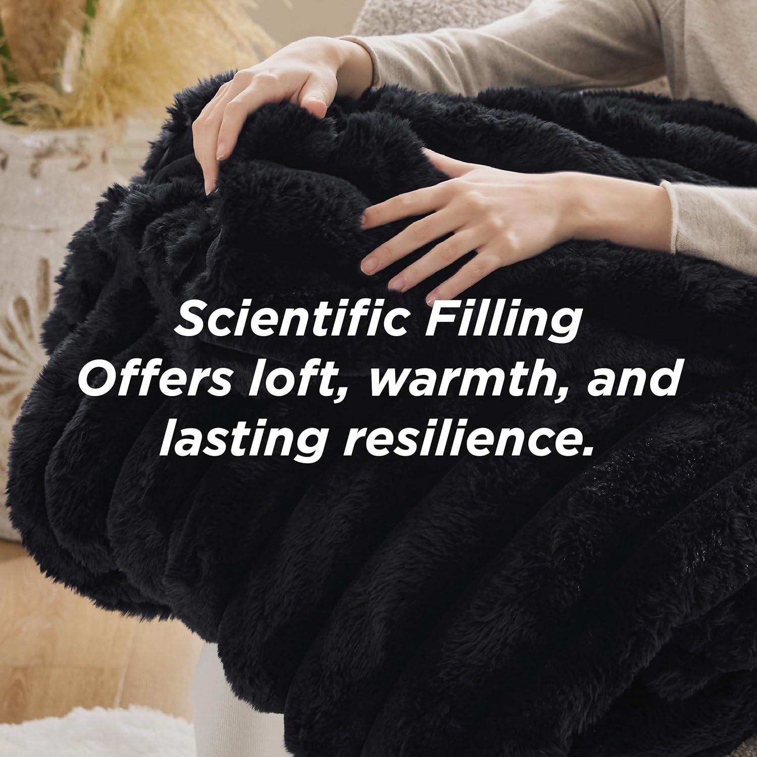 Dual-Texture Comfort: The sleeping side is crafted from solid-color ultra-soft microfiber, providing a smooth, warm surface that is gentle against the skin, perfect for a cozy night's sleep. The other side is made from carved vegan fur, delivering an exceptionally plush and soft texture that adds a luxurious feel to your bedding.