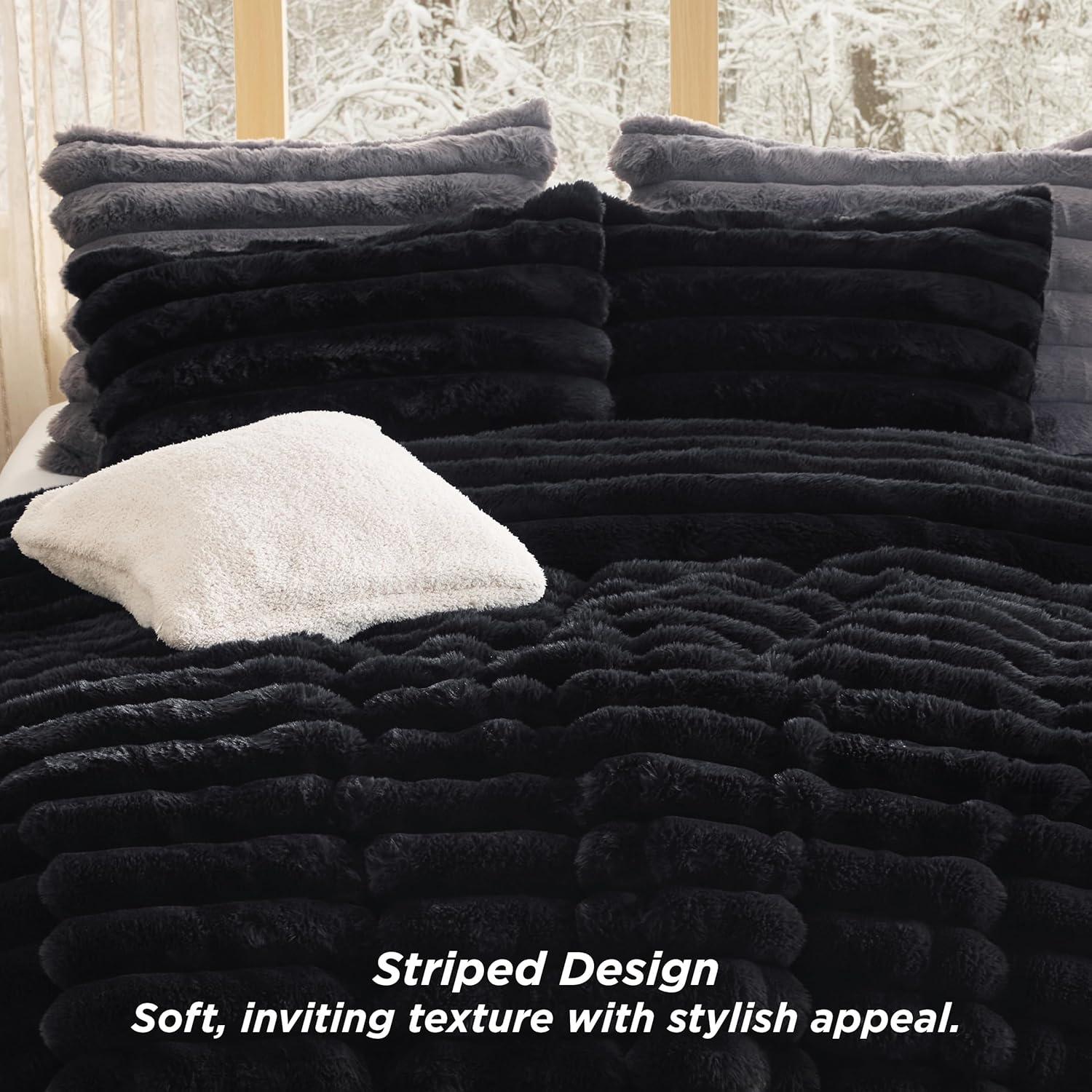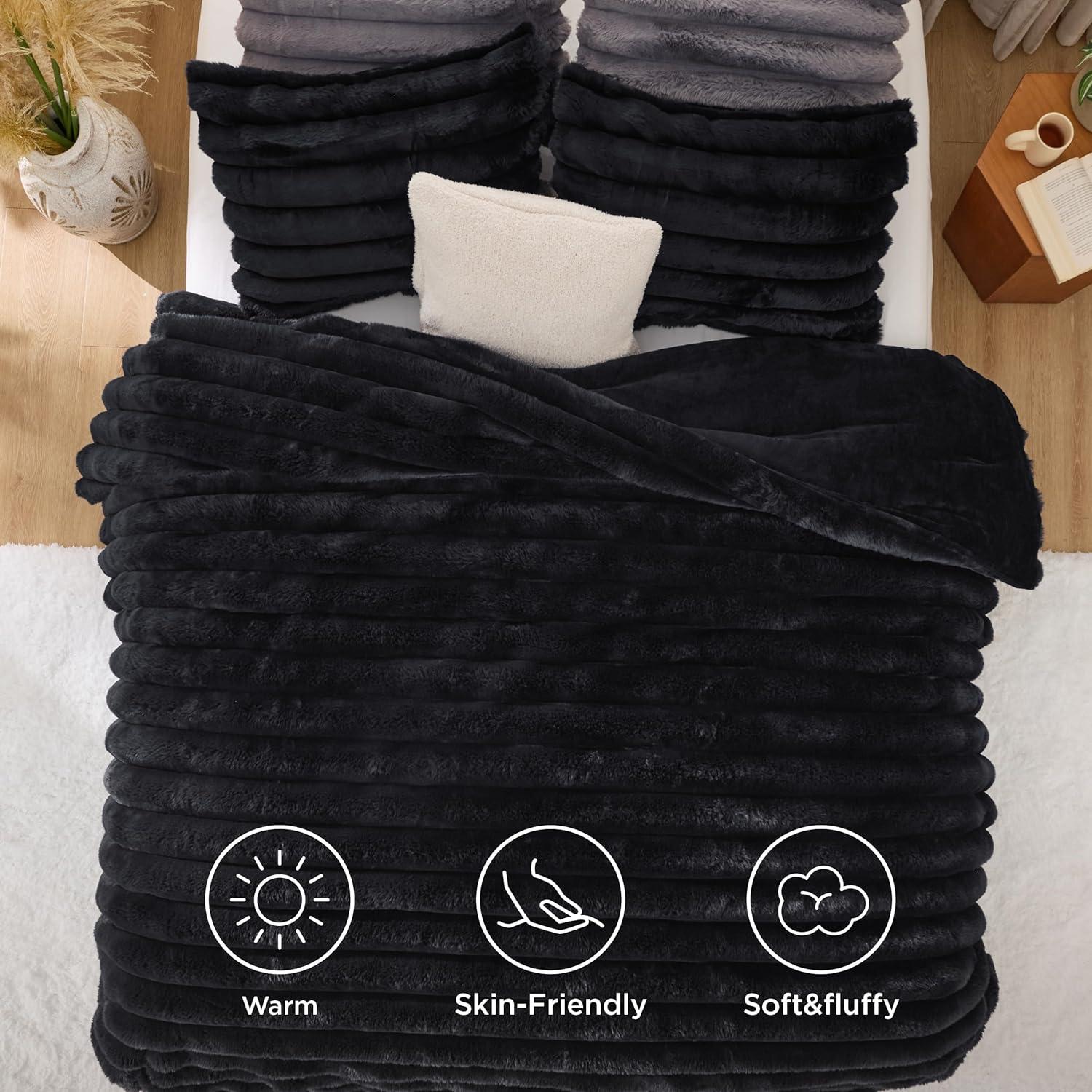 Bedsure Fluffy Comforter Set Queen – Light Beige Faux Fur Queen Comforter, Soft Shaggy Plush Bubble Bedding Comforter Sets, Winter Warm Luxury Fuzzy Bed Set 3 Pieces, 1 Comforter and 2 Pillowcases(07 – Black)