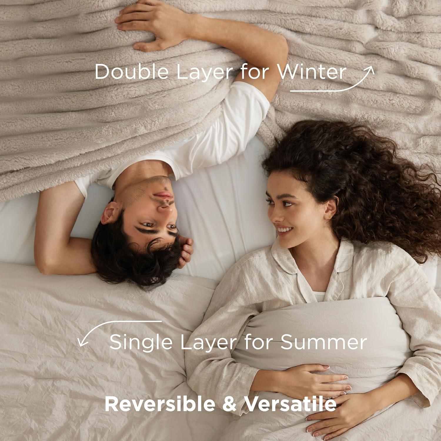 Bedsure Gentlesoft 2-in-1 Queen Comforter Set and Detachable Fluffy Blanket, Beige Bedding Set for All Season Use, SnapTech Design for Space Saving (Includes 2 Pillow Shams, 2 Pillowcases)(01 - Beige)