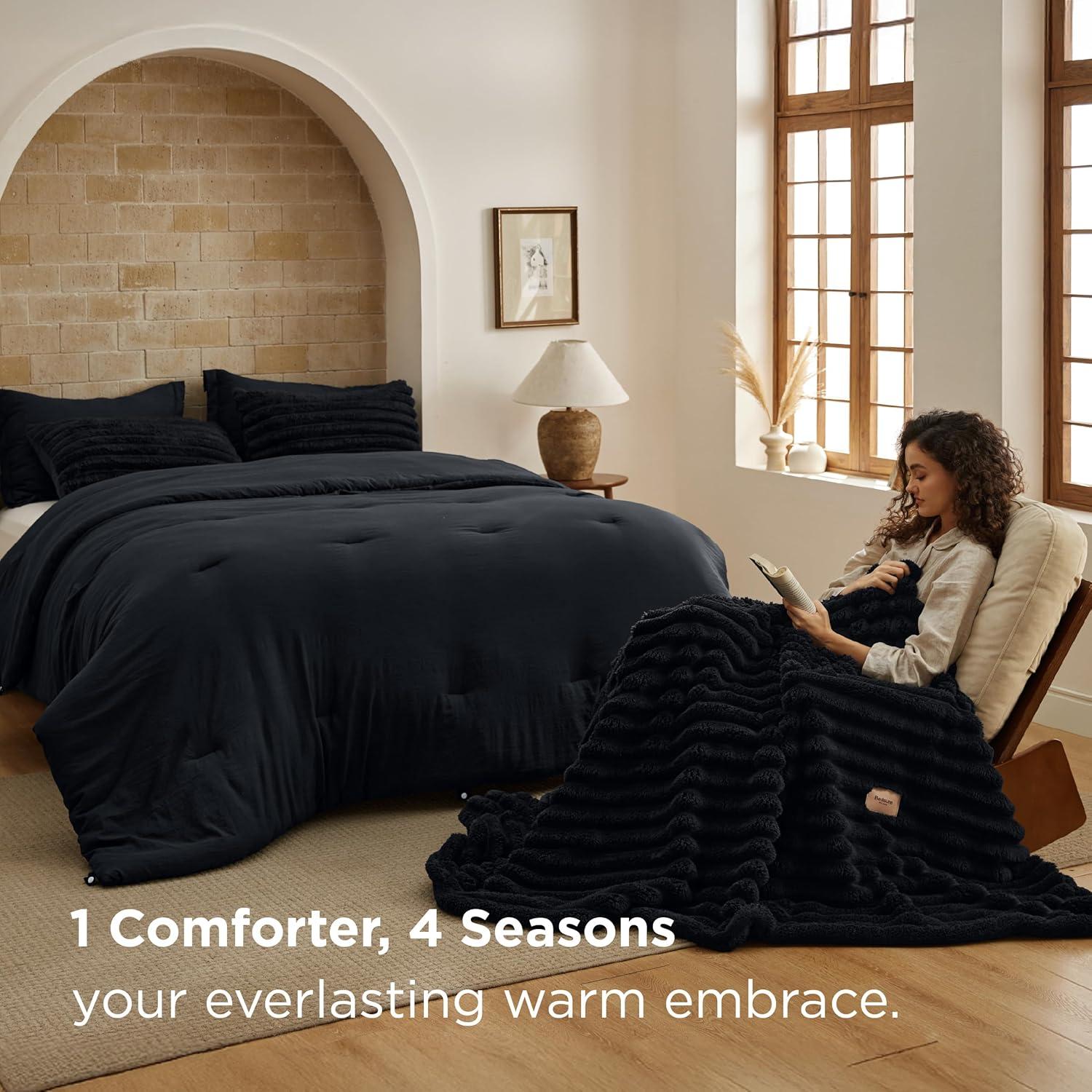 Sleep Upgrade Included: Comes with 1 prewashed comforter (90″ x 90″), 1 fluffy blanket (90″ x 90″), 2 Pillowcases (20″ x 26″), 2 Pillow Shams (20″ x 26″ + 2″). OEKO-TEX certified and tested through 5 washes to ensure long-lasting softness and comfort.