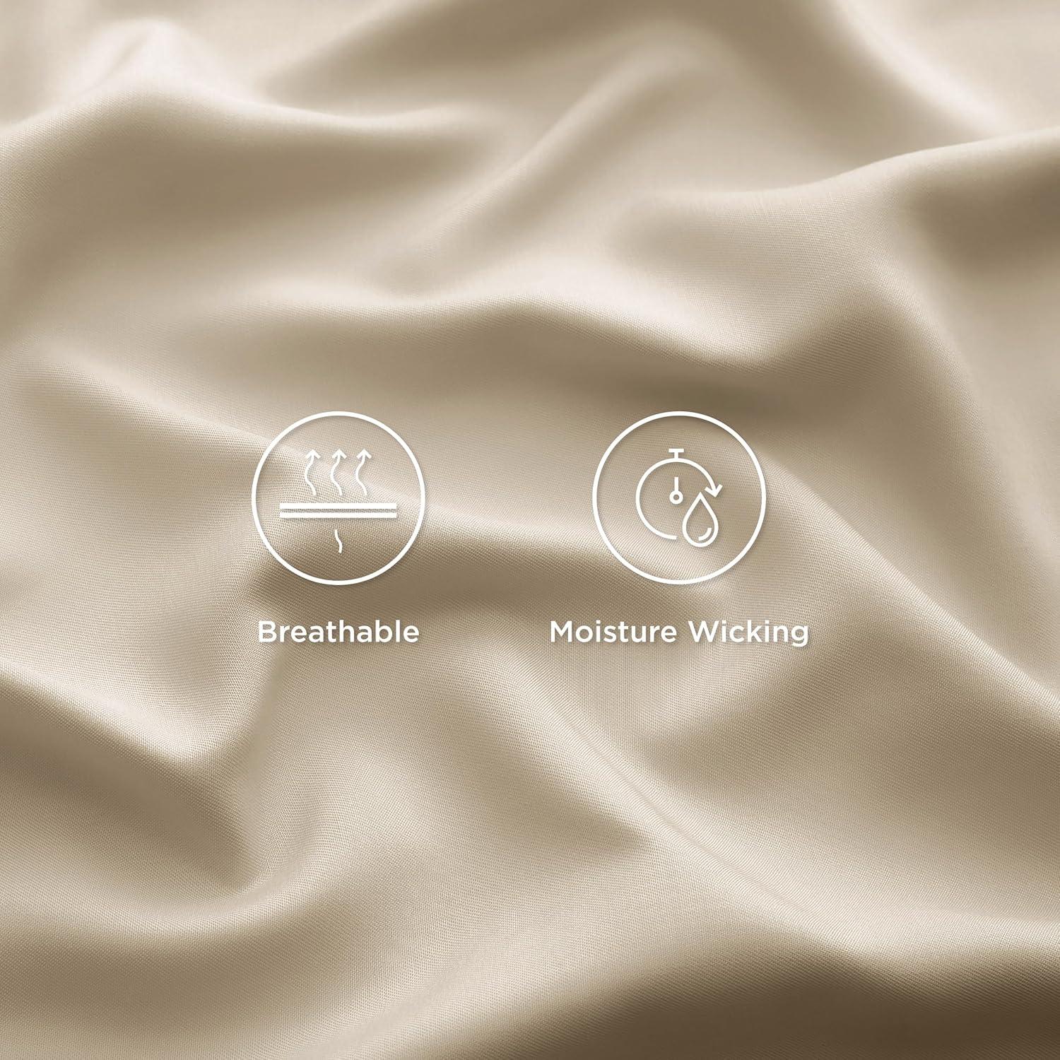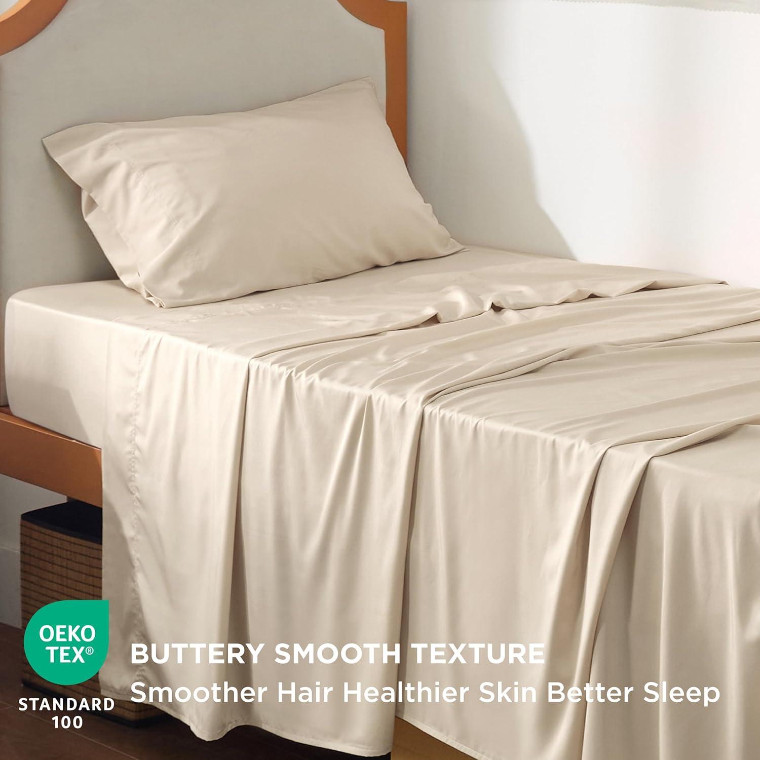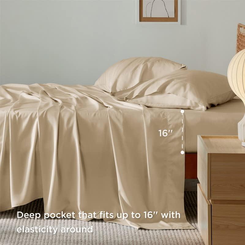 imageBedsure GentleSoft Queen Sheet Set Rayon Derived from Bamboo Cooling Sheets Breathable ampamp Soft Deep Pocket Up to 16 Inches Hotel Luxury Silky Bedding for Hot Sleepers Grey03  Beige