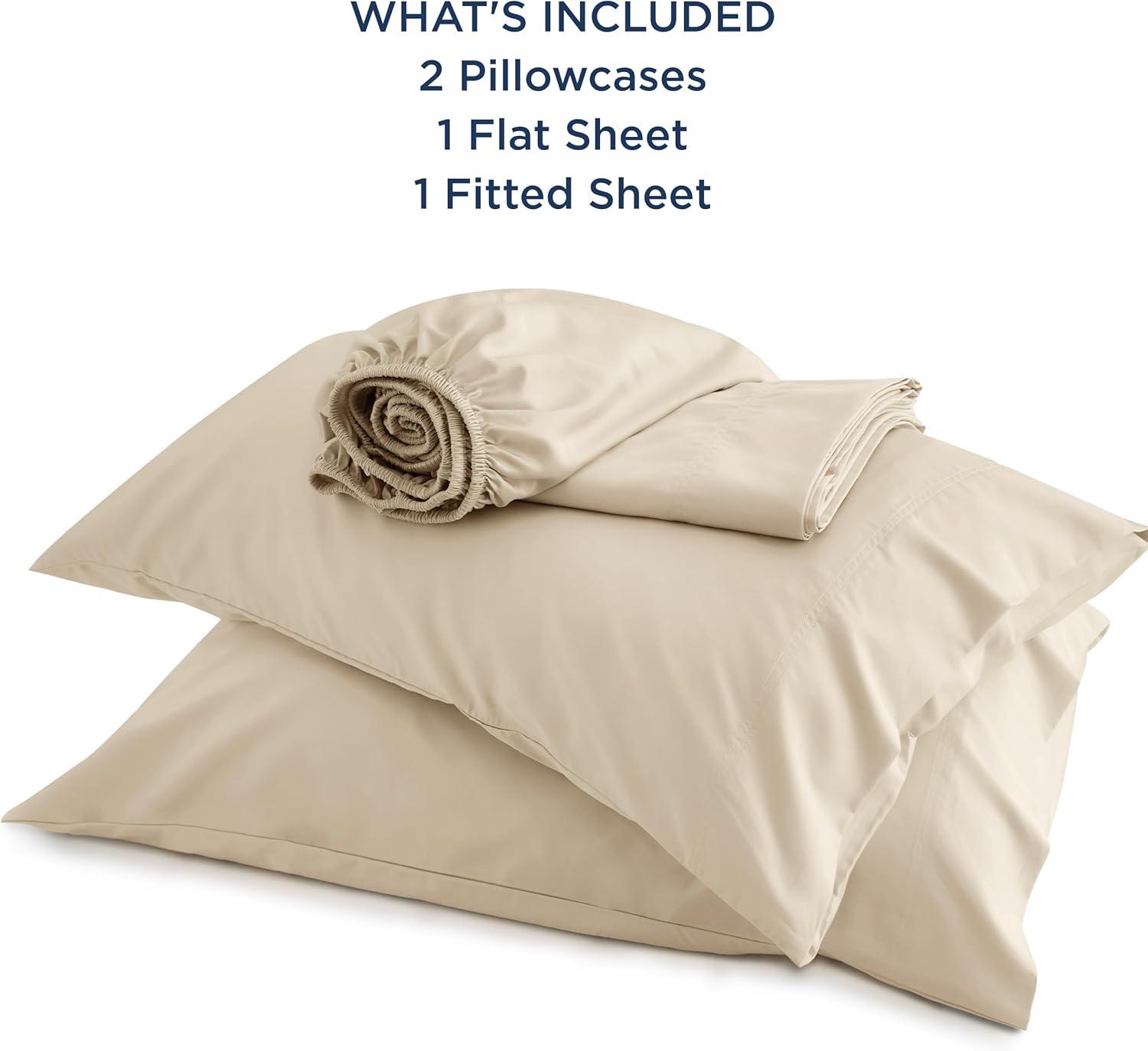 WHAT'S INCLUDED: This all-in-one queen sheet set includes a flat sheet (90″ x 102″), a fitted sheet (60″ x 80″ + 16″), and two pillowcases (20″ x 30″). Everything you need for a cozy bed setup, all in one package