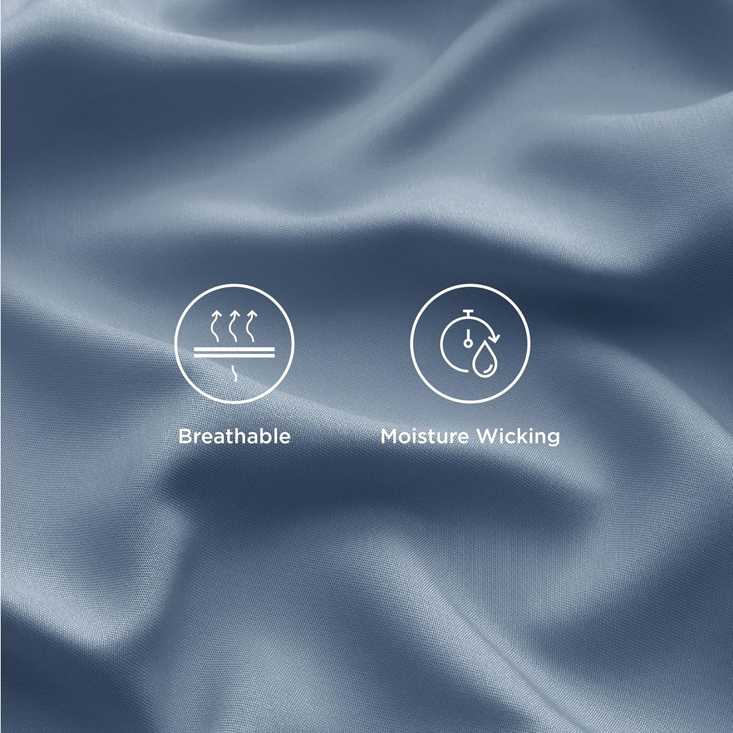 Bedsure GentleSoft Queen Sheet Set, Rayon Derived from Bamboo, Cooling Sheets, Breathable & Soft, Deep Pocket Up to 16 Inches, Hotel Luxury Silky Bedding for Hot Sleepers, Grey(05 - Mineral Blue)