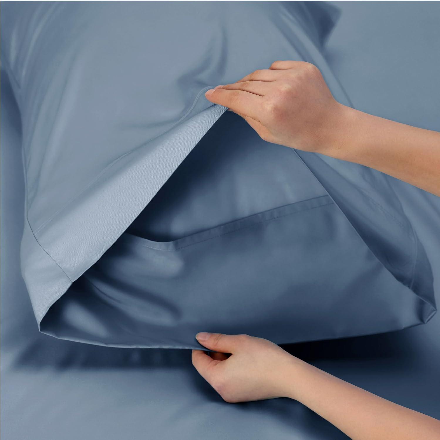 EASY FIT: Our fitted sheet fits mattresses up to 16″ thick. The 360° elastic band ensures a secure fit, eliminating endless fussing. Plus, the envelope-closure pillowcases protect pillows from slipping out