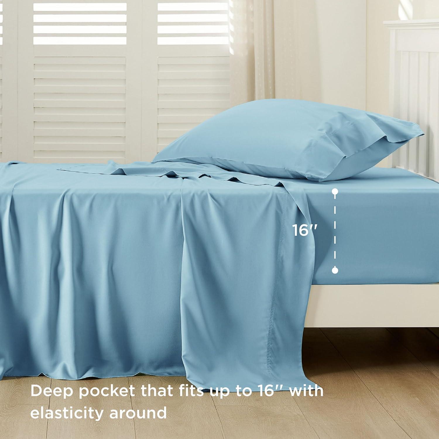 Bedsure GentleSoft Queen Sheet Set, Rayon Derived from Bamboo, Cooling Sheets, Breathable & Soft, Deep Pocket Up to 16 Inches, Hotel Luxury Silky Bedding for Hot Sleepers, Grey(08 - Teal Blue)