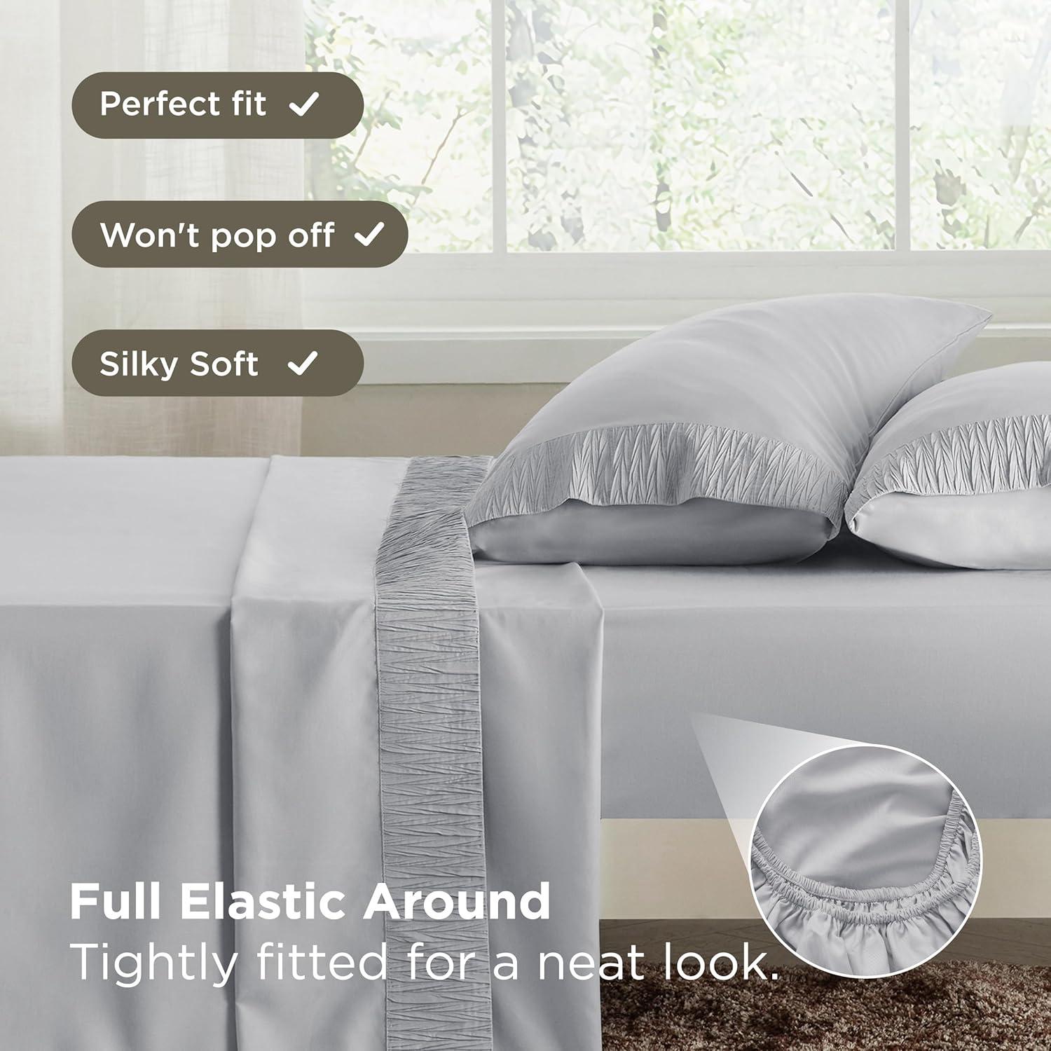 ELEGANT DESIGN: The distinctive ruched hem on pillowcases and flat sheet creates a stunning border that transforms any bedroom into a stylish sleep paradise. Our unique dyeing technique maintains vibrant color even after a year, looking as good as day one