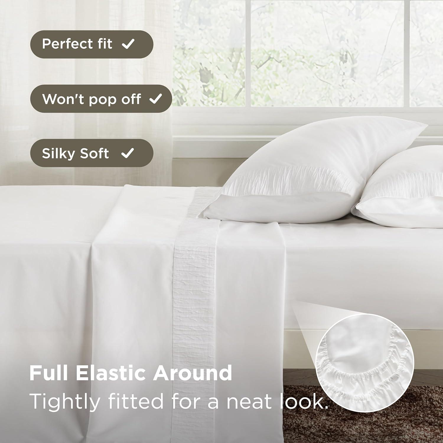PERFECT FIT: Deep pockets securely fit thick mattresses with pillow tops without midnight readjustments. The elastic all around keeps everything in place without slipping. Oversized pillowcases have a pocket design so pillows don't poke out. Withstand frequent