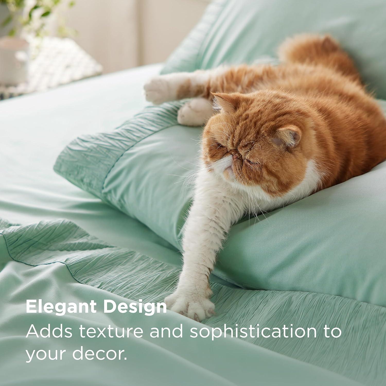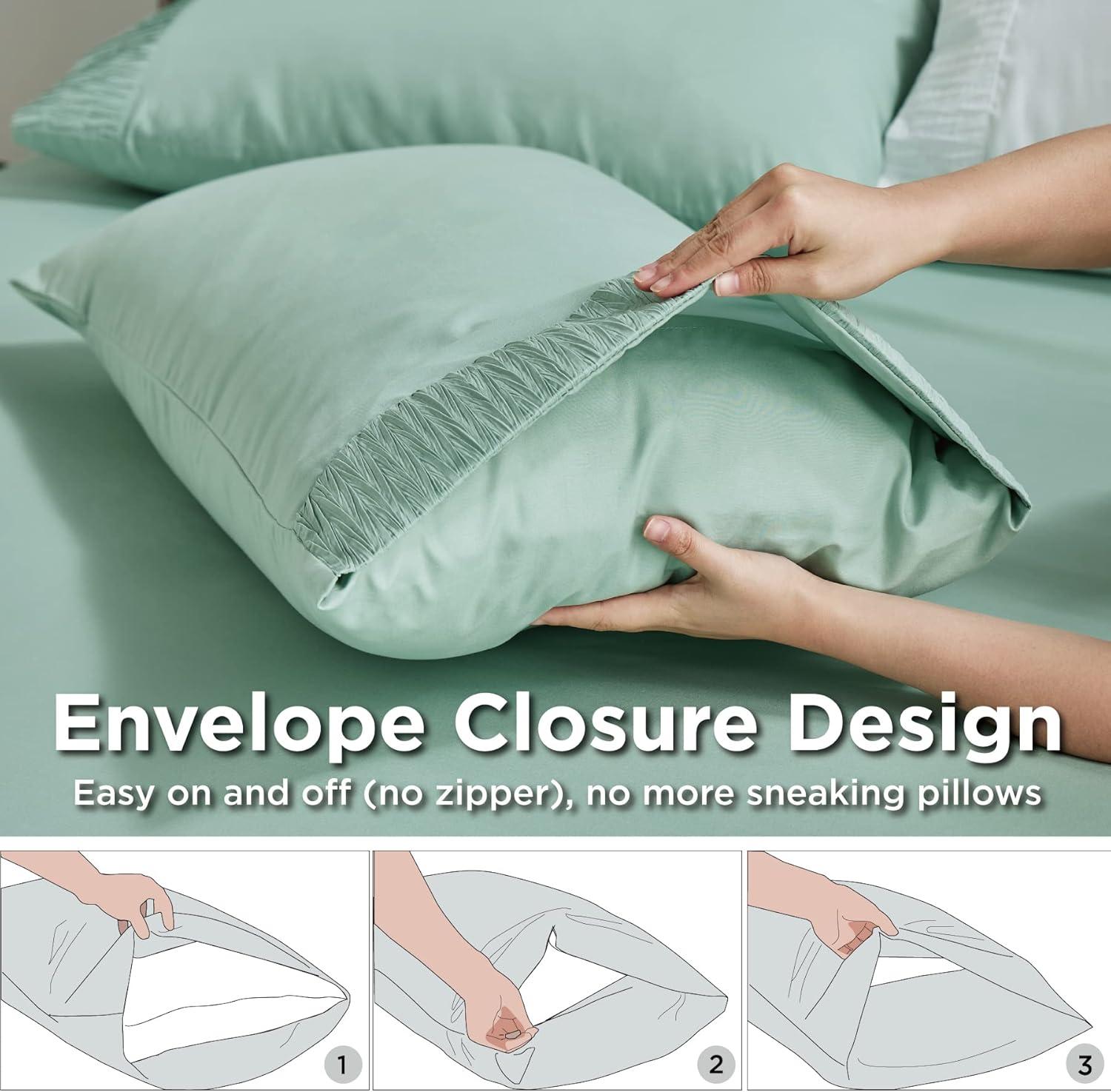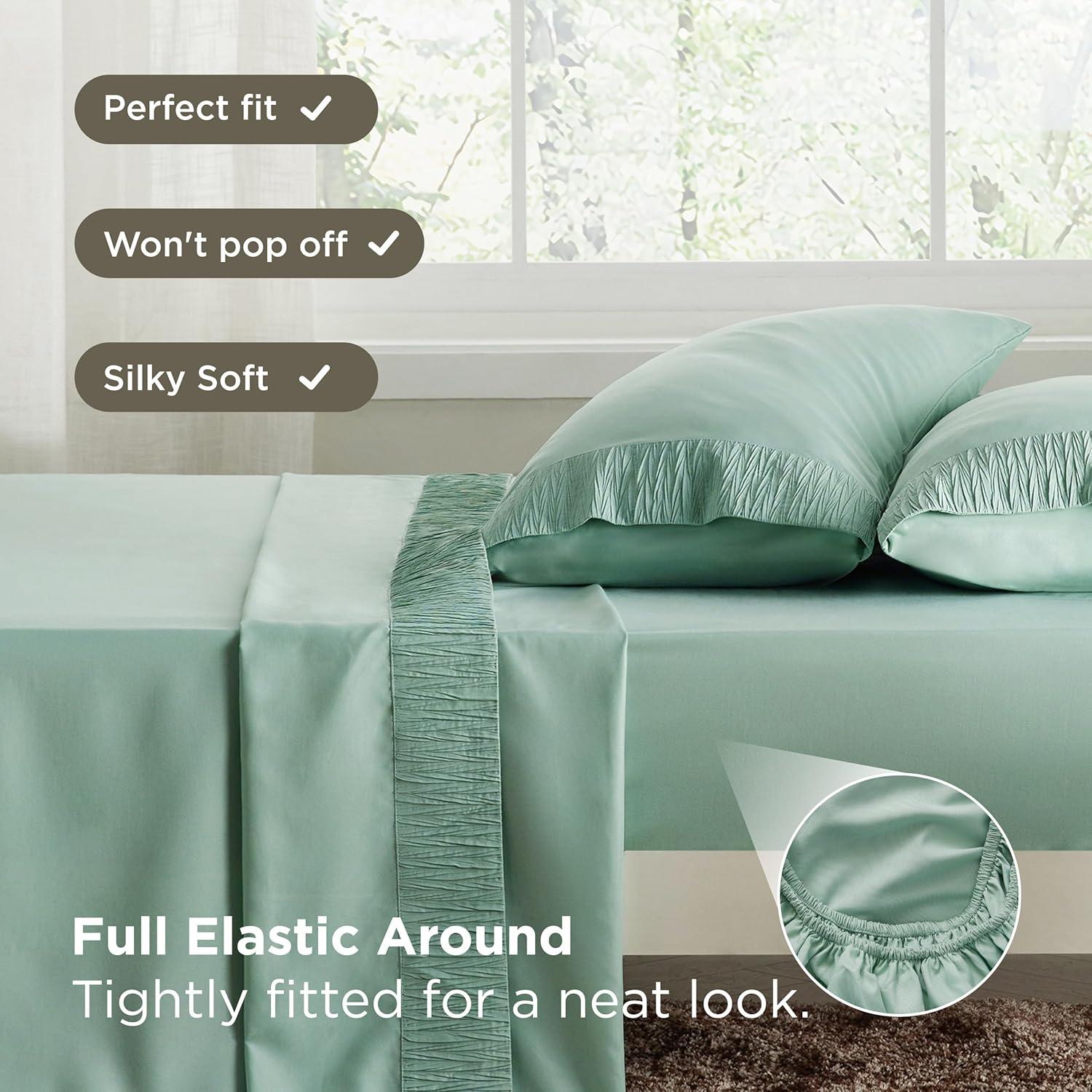 ELEGANT DESIGN: The distinctive ruched hem on pillowcases and flat sheet creates a stunning border that transforms any bedroom into a stylish sleep paradise. Our unique dyeing technique maintains vibrant color even after a year, looking as good as day one