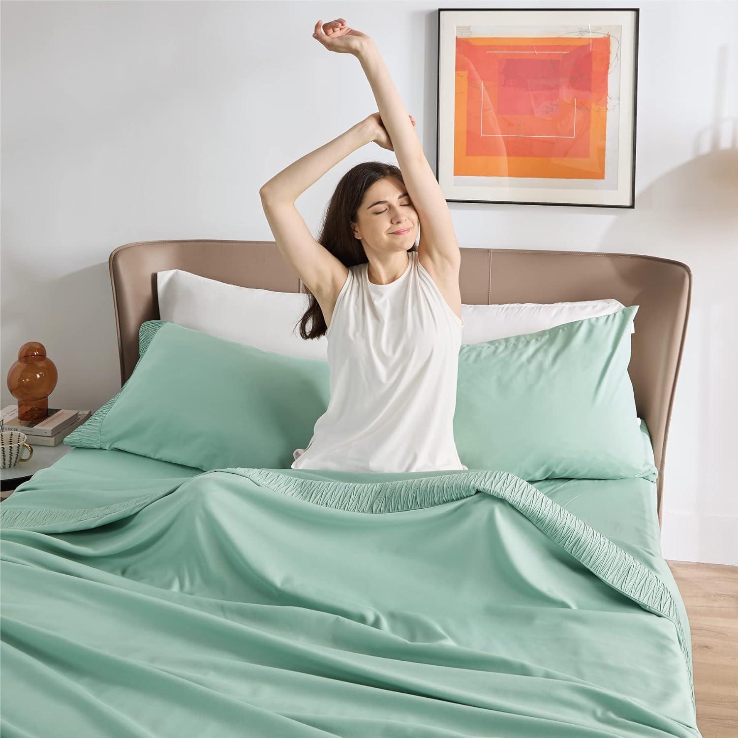 Bedsure King Size Sheets Set – 4 Pieces Soft King Sheets – Breathable & Cooling – Hotel Luxury – Easy Care Polyester Microfiber Bedding for Women, Men, Dusty Pink(11 – Mint Green)