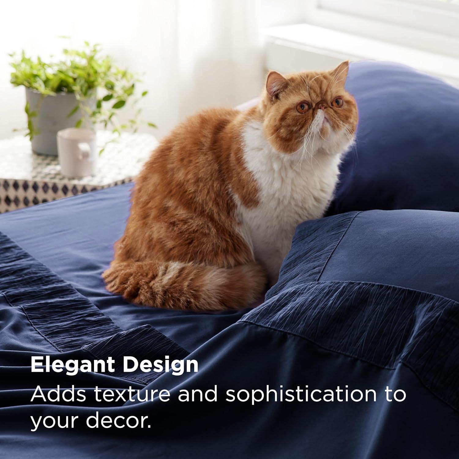 ELEGANT DESIGN: The distinctive ruched hem on pillowcases and flat sheet creates a stunning border that transforms any bedroom into a stylish sleep paradise. Our unique dyeing technique maintains vibrant color even after a year, looking as good as day one