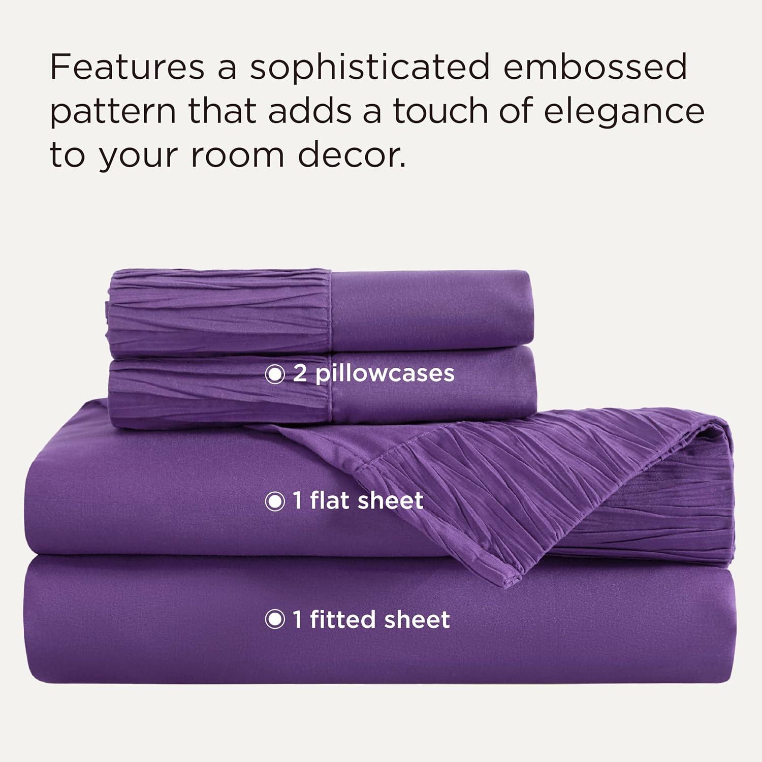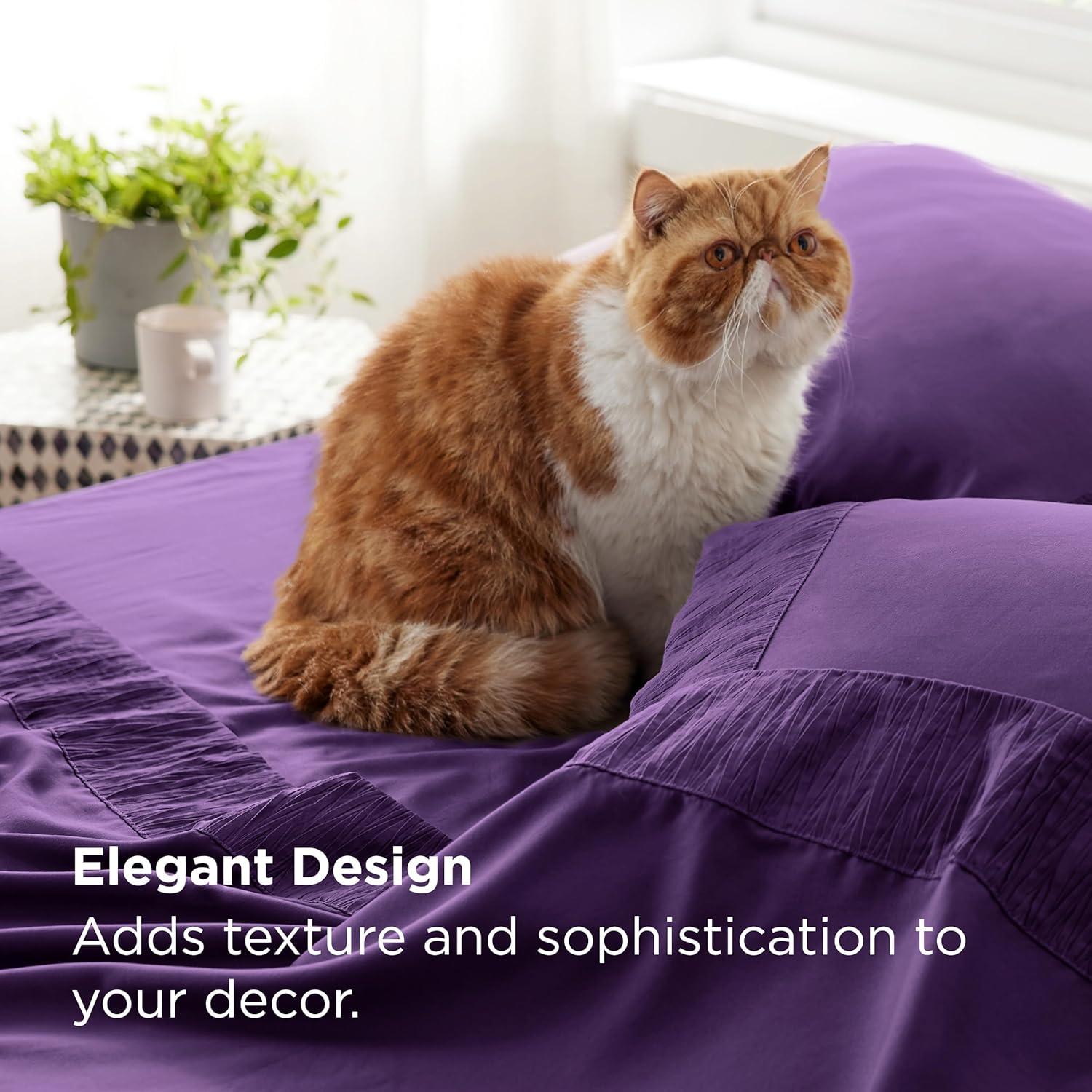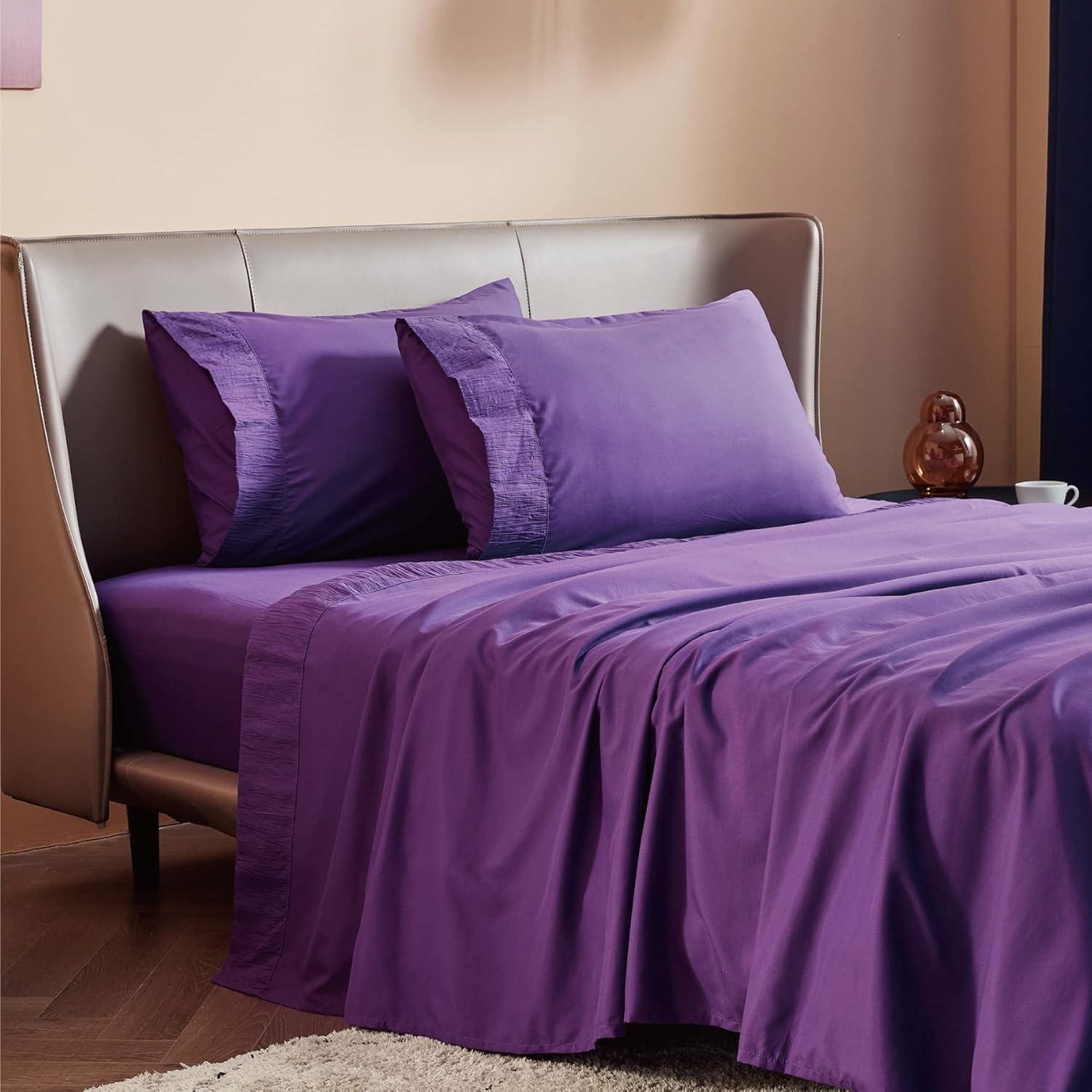ELEGANT DESIGN: The distinctive ruched hem on pillowcases and flat sheet creates a stunning border that transforms any bedroom into a stylish sleep paradise. Our unique dyeing technique maintains vibrant color even after a year, looking as good as day one