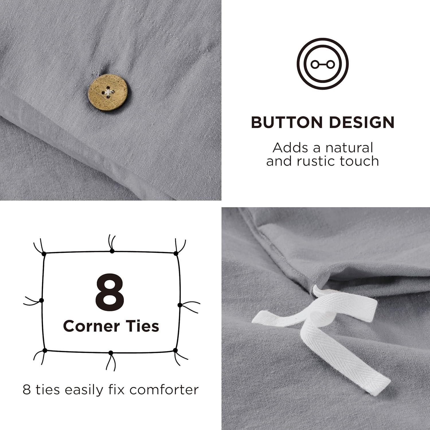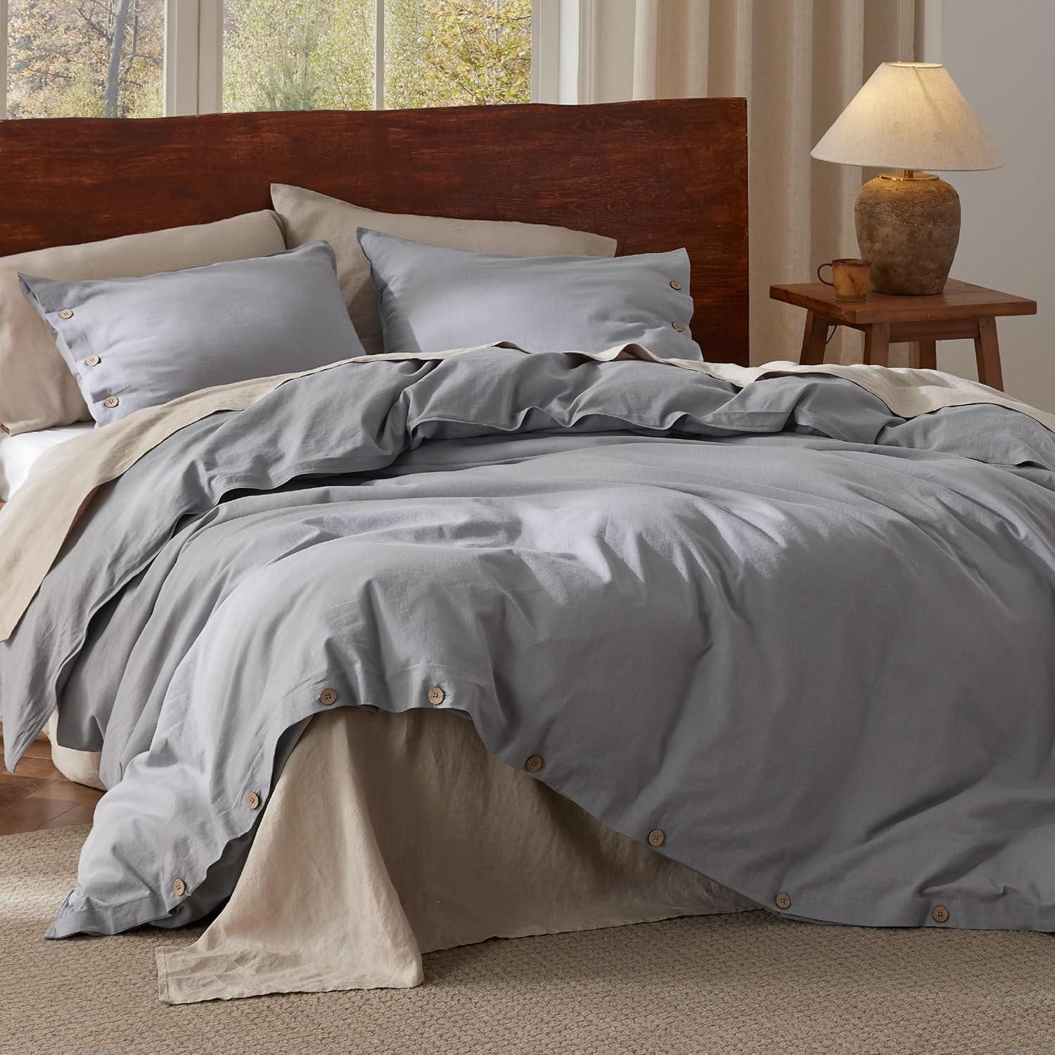 imageBedsure Linen Duvet Cover King Size  Linen Cotton Blend Bedding Set Soft ampamp Cozy 3 Pieces 1 Duvet Cover 104x90 Inches and 2 Pillowcases Natural Color Cooling Bedding Comforter Sold Separately09 Silver Grey No Comforter