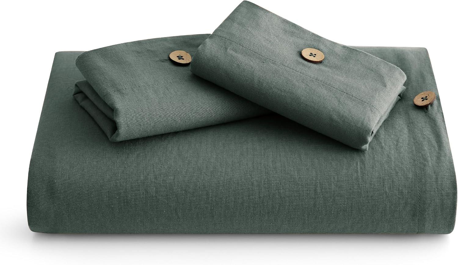 Bedsure Linen Duvet Cover King Size – Linen Cotton Blend Bedding Set, Soft & Cozy, 3 Pieces, 1 Duvet Cover 104×90 Inches and 2 Pillowcases, Natural Color Cooling Bedding, Comforter Sold Separately(13 – Dark Green (No Comforter))