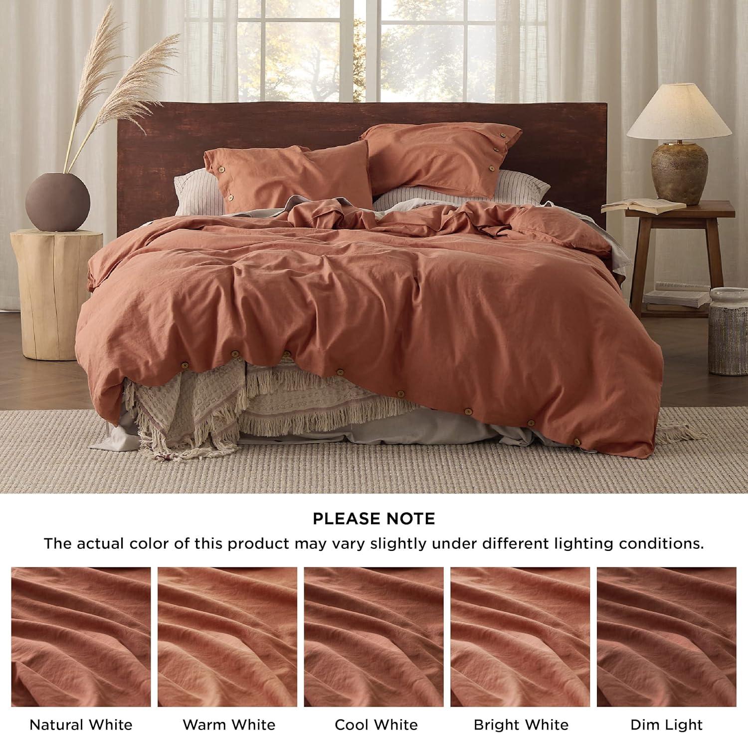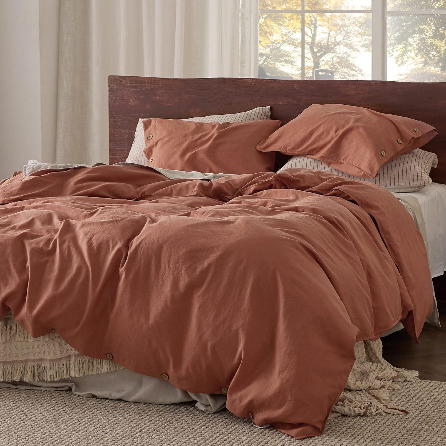 Bedsure Linen Duvet Cover King Size – Linen Cotton Blend Bedding Set, Soft & Cozy, 3 Pieces, 1 Duvet Cover 104×90 Inches and 2 Pillowcases, Natural Color Cooling Bedding, Comforter Sold Separately(19 – Burnt Orange (No Comforter))