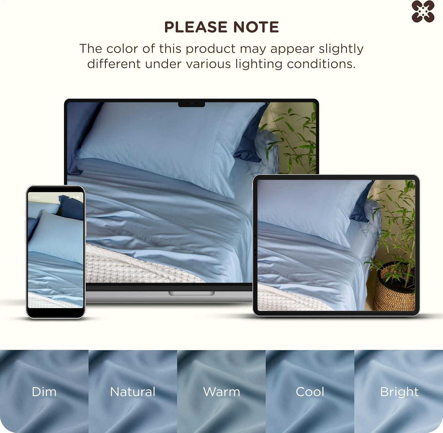 Bedsure Organic Bamboo Viscose Sheets - OCS & Oeko-Tex, 18 inch Deep Pockets Queen Sheet Set, 100% Viscose Derived from Bamboo, Ultra-Soft, Breathable & Cooling Bedsheets, 4 Pieces, Ivory(04 - Mineral Blue)