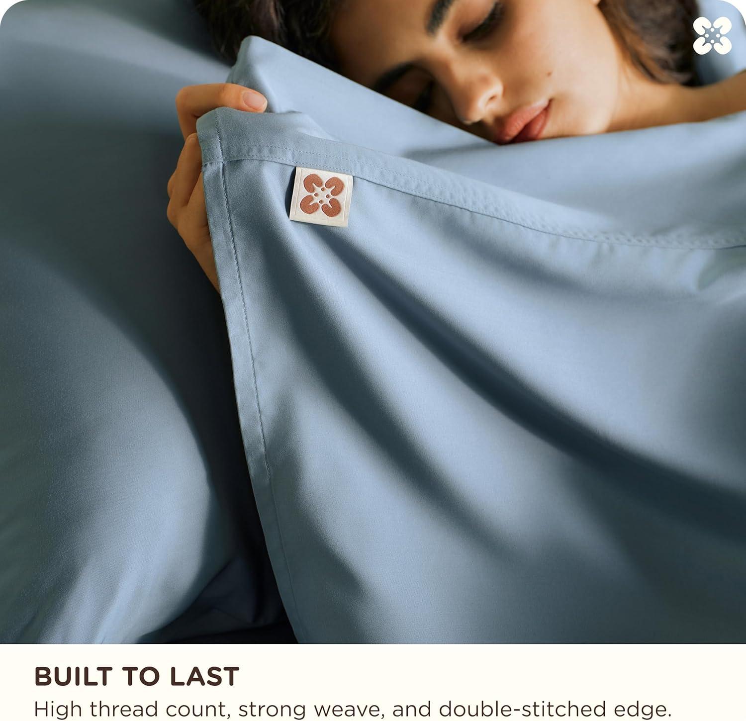 Secure Fit & No-Slip Design: These viscose derived from bamboo bed sheets are designed with an 18″ deep pocket, a 360° extra-wide elastic band, and reinforced elastic corner grips to keep your sheet snugly in place—even if you toss and turn through the night. Perfect fit for mattresses 8″–14″ deep, and stretches to accommodate up to 18″, no slipping, no adjusting, just perfect sleep. Pillowcases feature secure envelope closures, so every piece stays exactly where it should be