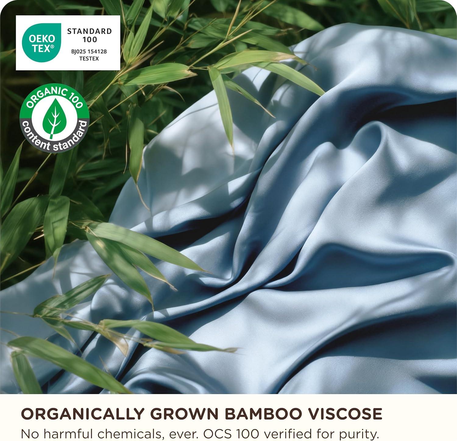 Bedsure Organic Bamboo Viscose Sheets – OCS & Oeko-Tex, 18 inch Deep Pockets Queen Sheet Set, 100% Viscose Derived from Bamboo, Ultra-Soft, Breathable & Cooling Bedsheets, 4 Pieces, Ivory(04 – Mineral Blue)