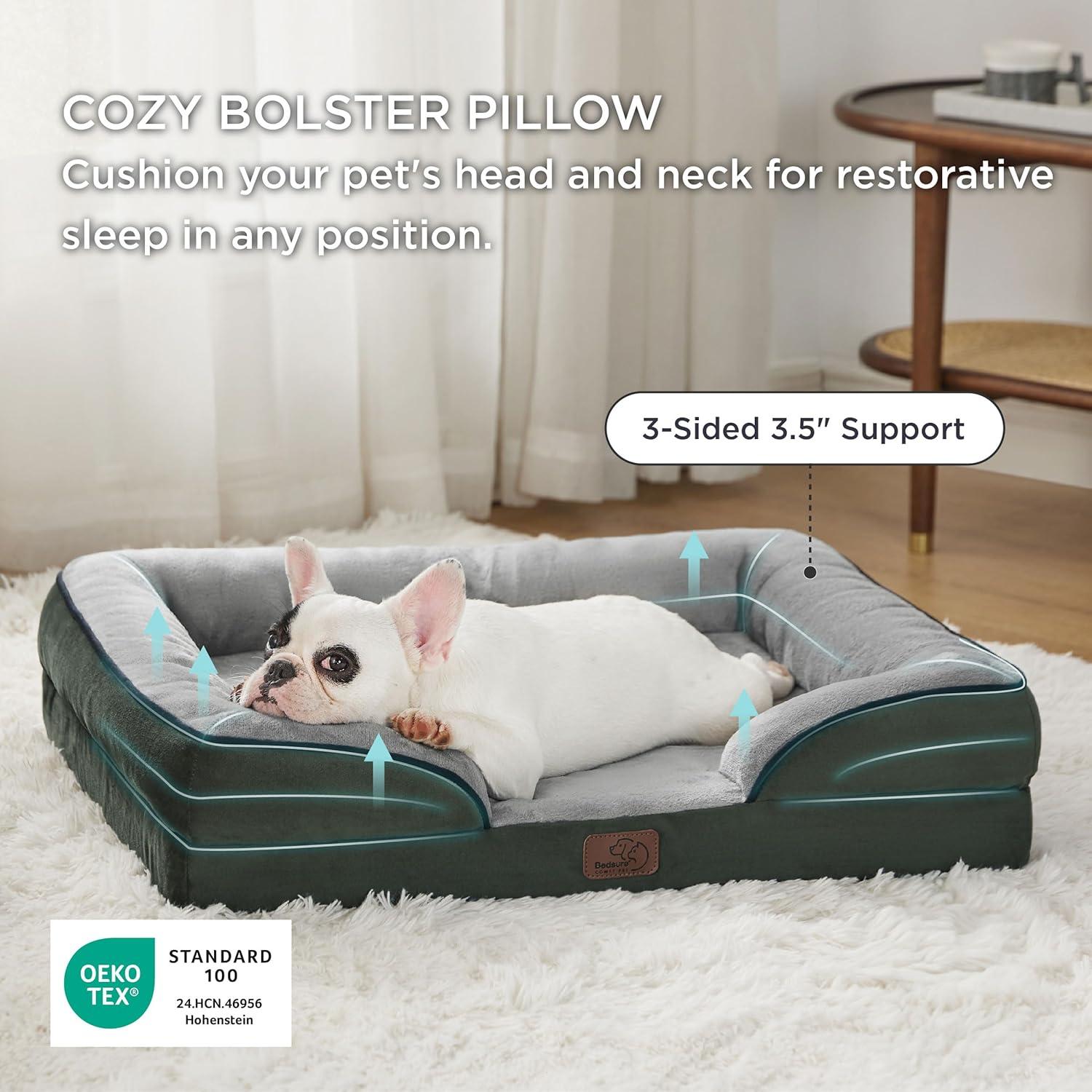 Bedsure Orthopedic Dog Beds Large Sized Dog – Washable Large Dog Cat Bed Waterproof, Comfort Dogs Couch Sofa with Washable Removable Cover, Pet Bed with Nonskid Bottom, Grey, 35″(Dark Green)