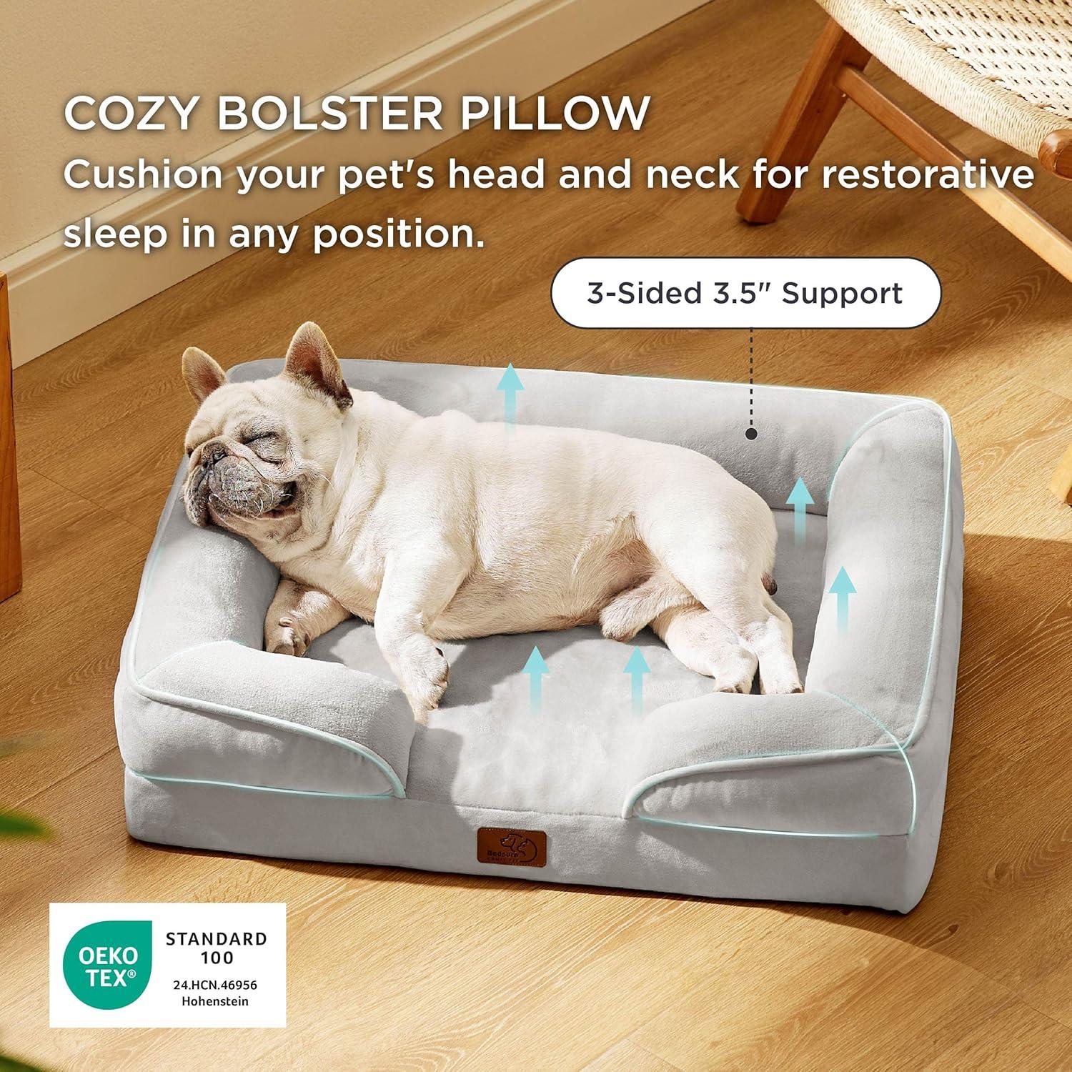 Bedsure Orthopedic Dog Beds Large Sized Dog – Washable Large Dog Cat Bed Waterproof, Comfort Dogs Couch Sofa with Washable Removable Cover, Pet Bed with Nonskid Bottom, Grey, 35″(Grey)