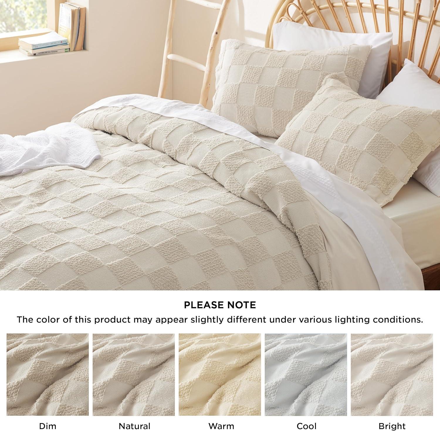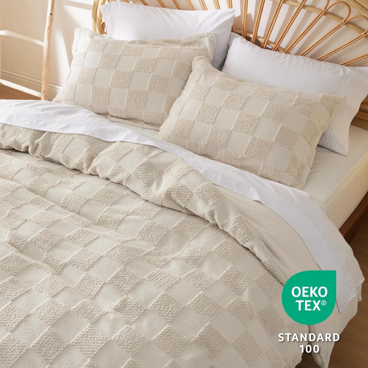 Bedsure Pink Duvet Cover Queen Size with Bowknot Jacquard Design, Soft and Elegant Boho Bedding Set, Luxurious Craftsmanship for a Stylish Bedroom,Includes 1 90"x90" Duvet Cover & 2 Pillow Shams(01 - Beige - Checkered (No Comforter))