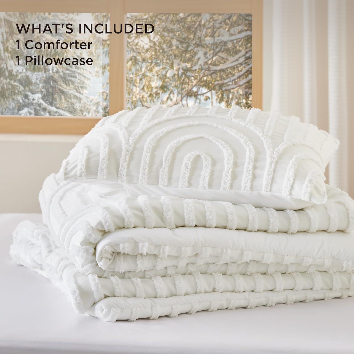 Bedsure Queen Size Comforter Set - Beige Tufted Boho Bed Set, Farmhouse Shabby Chic Embroidery Bedding for All Seasons, 3 Pieces, 1 Soft Jacquard Queen Comforter and 2 Pillow Shams(02 - White - Arch Jacquard)