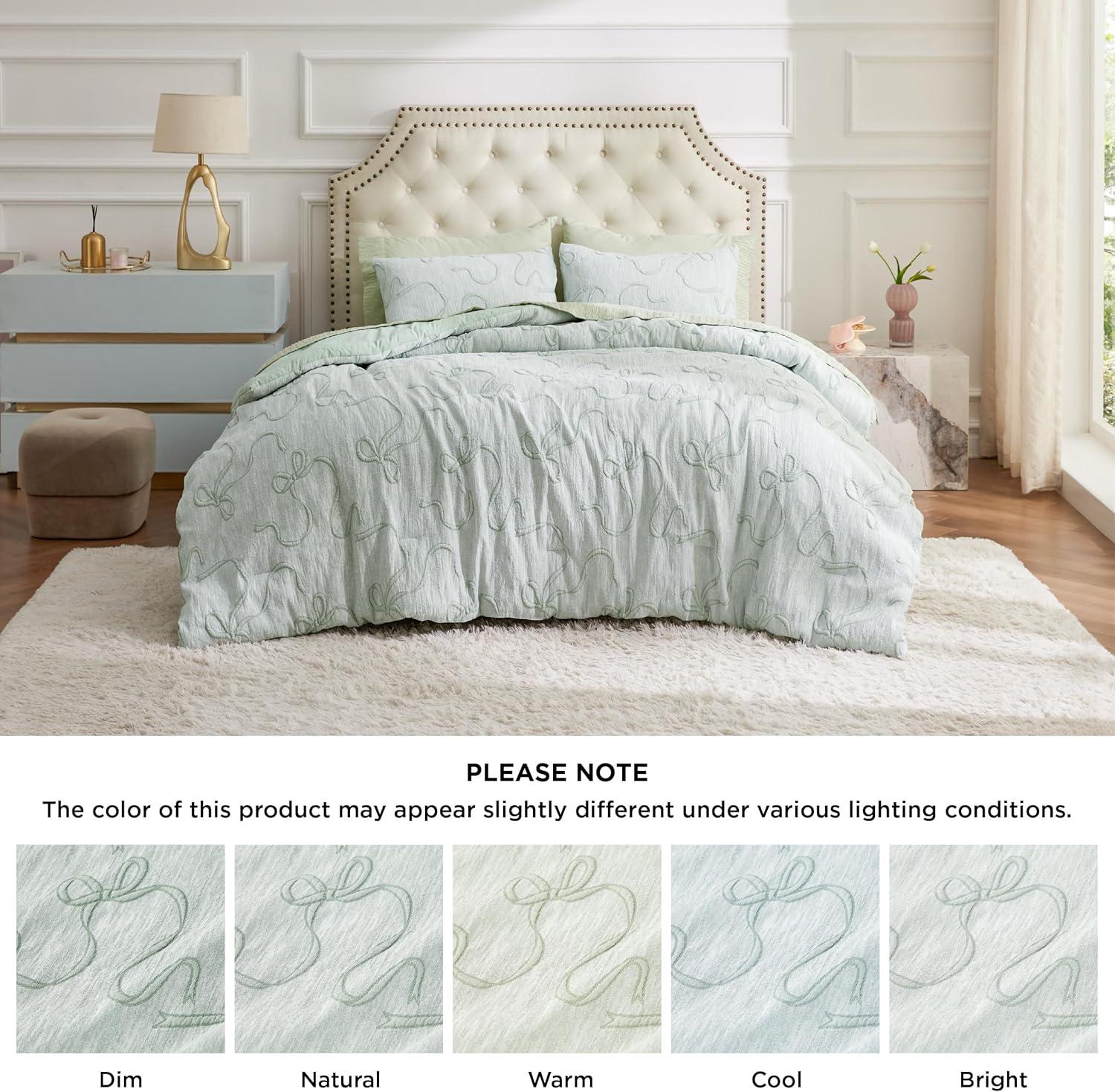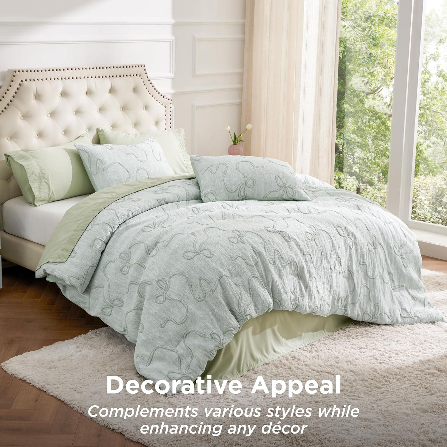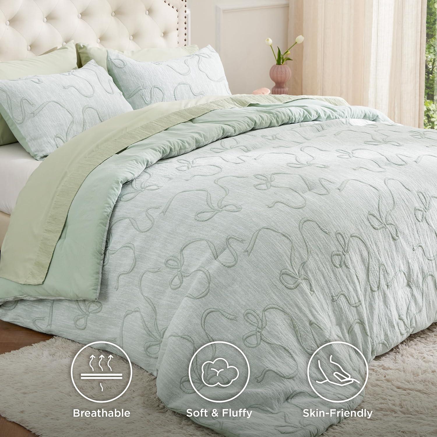 imageBedsure Queen Size Comforter Set  Beige Tufted Boho Bed Set Farmhouse Shabby Chic Embroidery Bedding for All Seasons 3 Pieces 1 Soft Jacquard Queen Comforter and 2 Pillow Shams07  Sage Green  Bow