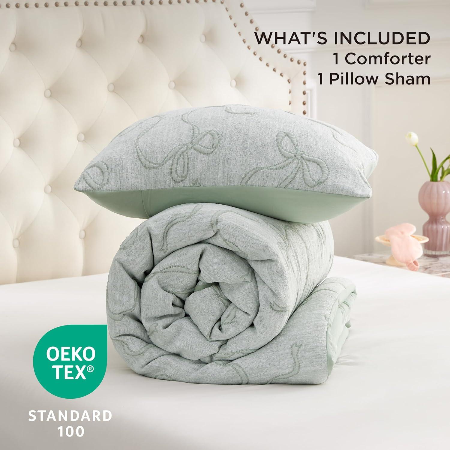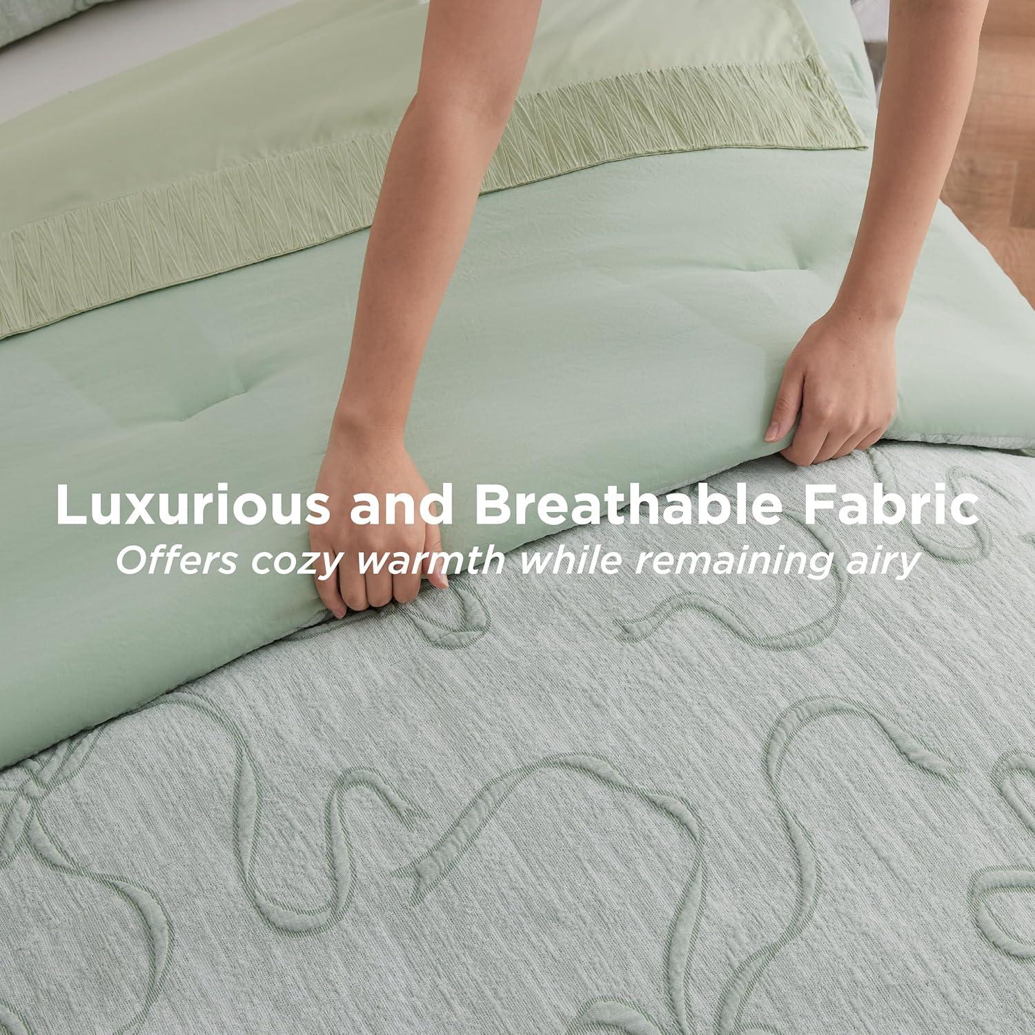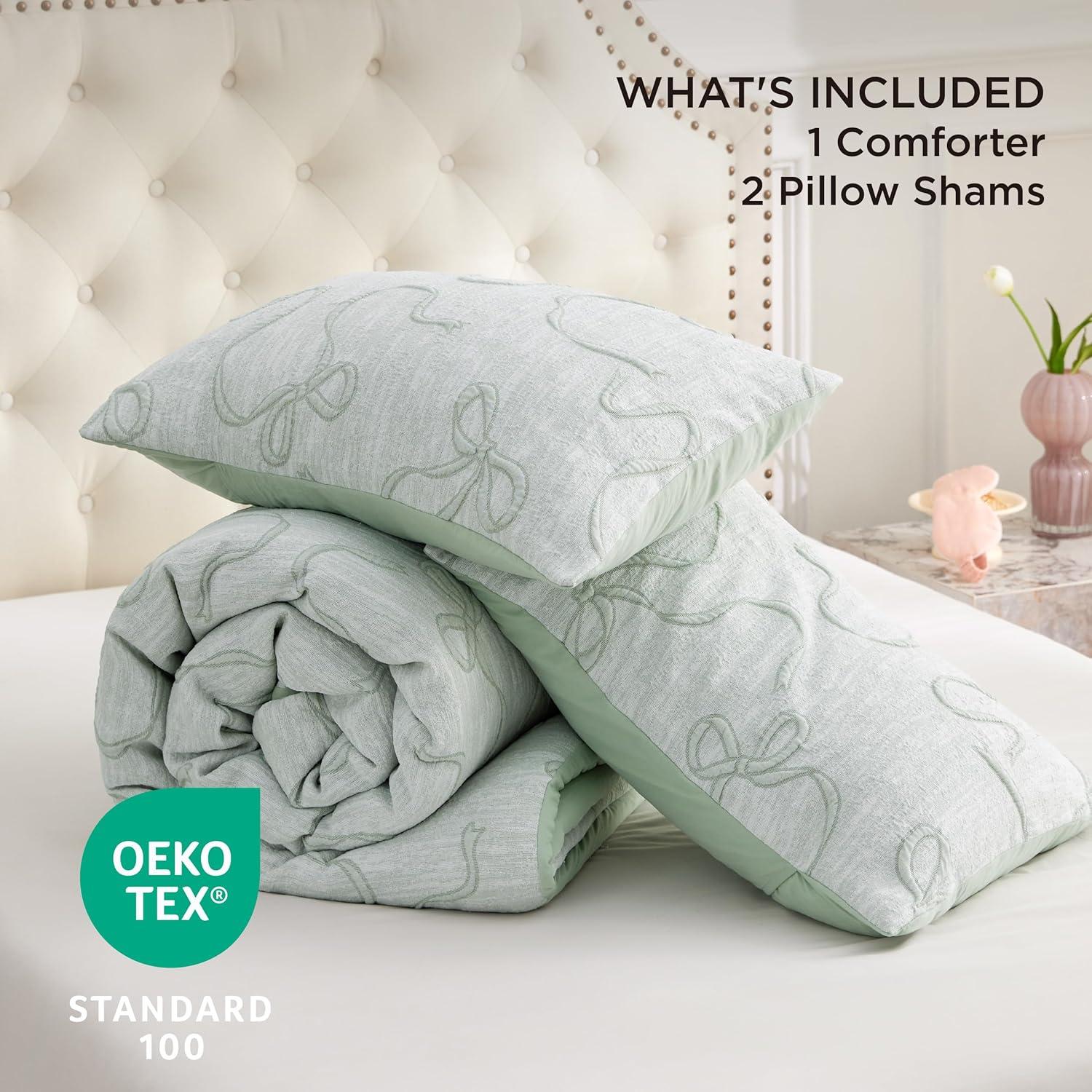imageBedsure Queen Size Comforter Set  Beige Tufted Boho Bed Set Farmhouse Shabby Chic Embroidery Bedding for All Seasons 3 Pieces 1 Soft Jacquard Queen Comforter and 2 Pillow Shams07  Sage Green  Bow