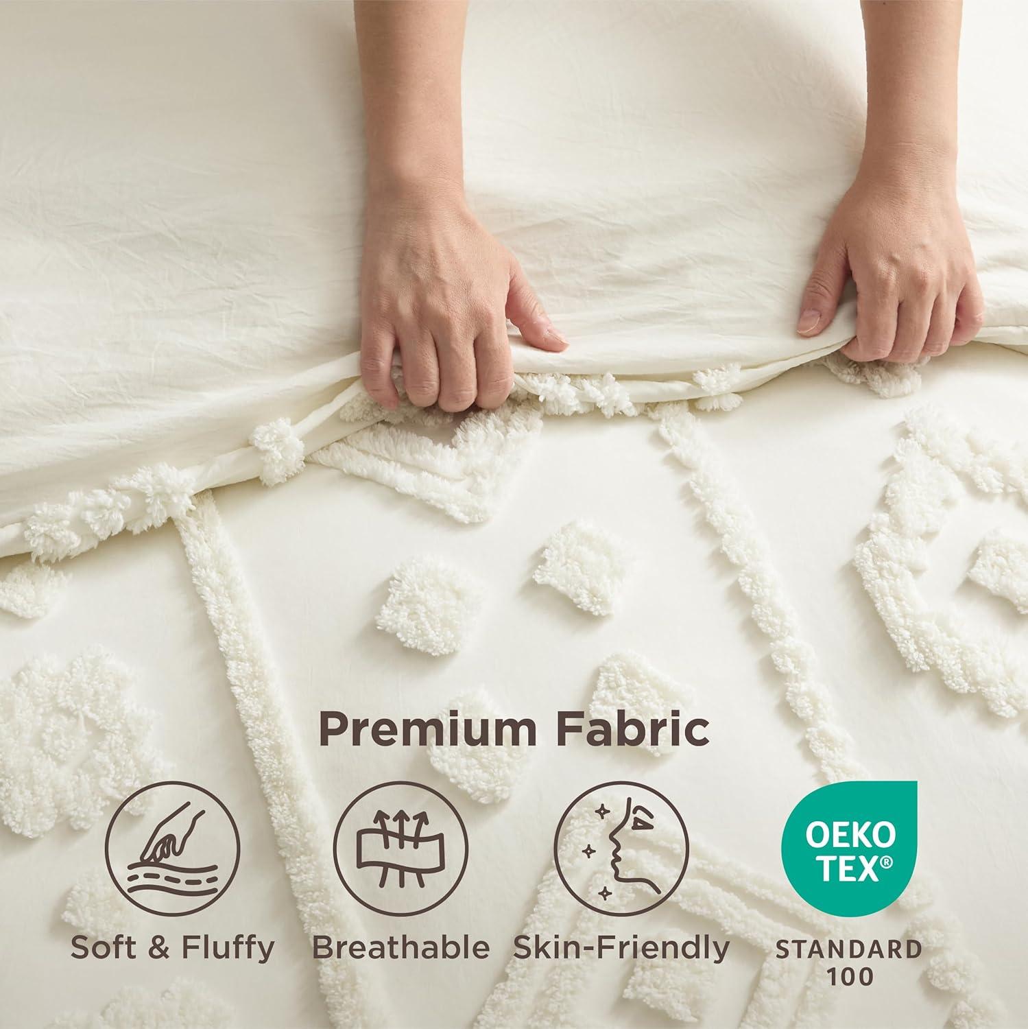 imageBedsure Queen Size Comforter Set  Beige Tufted Boho Bed Set Farmhouse Shabby Chic Embroidery Bedding for All Seasons 3 Pieces 1 Soft Jacquard Queen Comforter and 2 Pillow Shams10  White