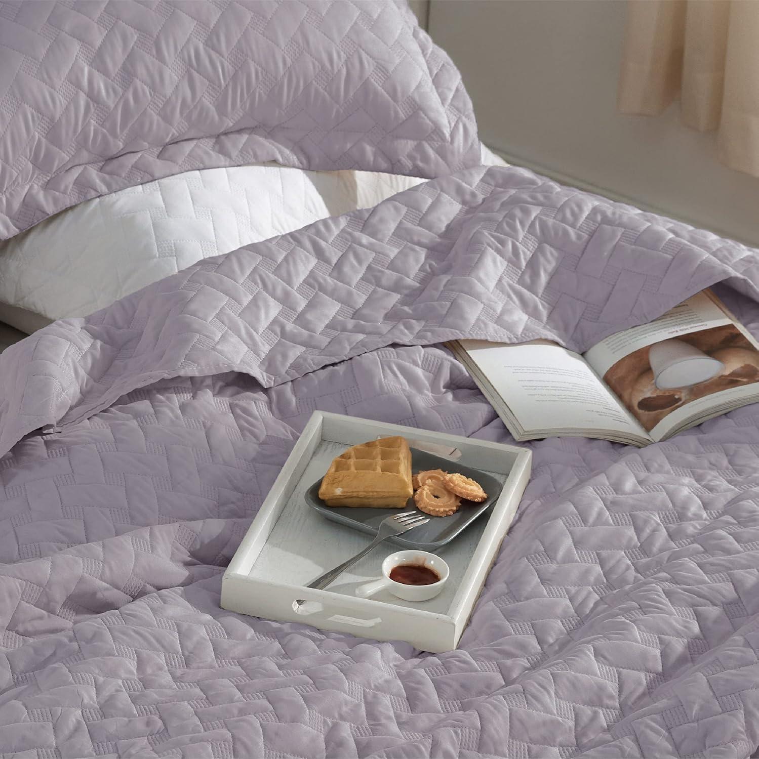 imageBedsure Quilts Queen Size  Lightweight Bedspreads Queen Size with Classic Honeycomb Quilting Soft Quilt Bedding Set Taupe Comforter Set Coverlet for All Seasons with 2 Pillow Shams 90 x 96  SkinFriendly Soft AllSeason Comfort Breathable Lightweight Machine Washable22  Light Purple