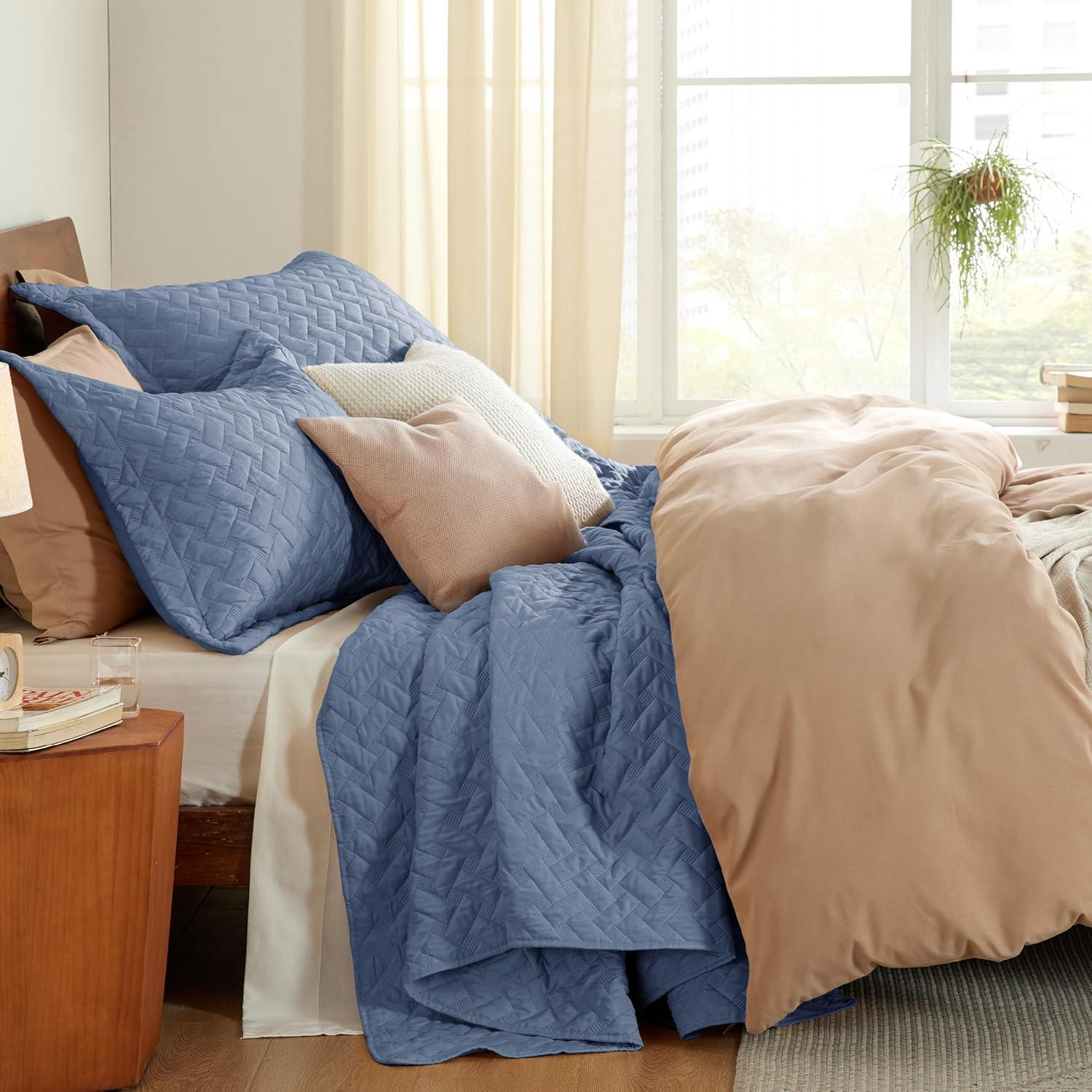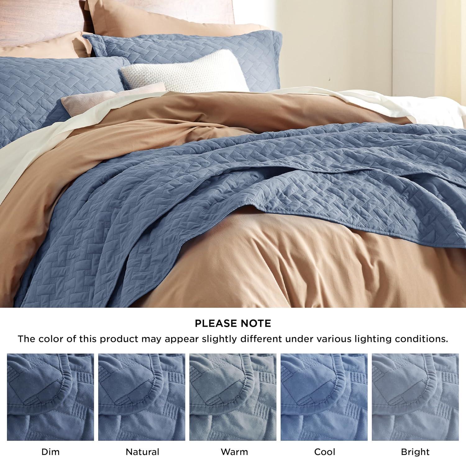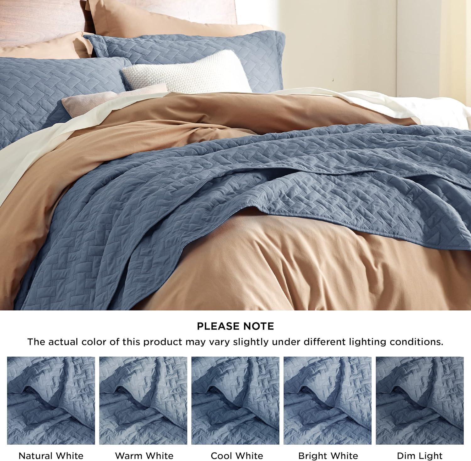imageBedsure Quilts Queen Size  Lightweight Bedspreads Queen Size with Classic Honeycomb Quilting Soft Quilt Bedding Set Taupe Comforter Set Coverlet for All Seasons with 2 Pillow Shams 90 x 96  SkinFriendly Soft AllSeason Comfort Breathable Lightweight Machine Washable06  Mineral Blue