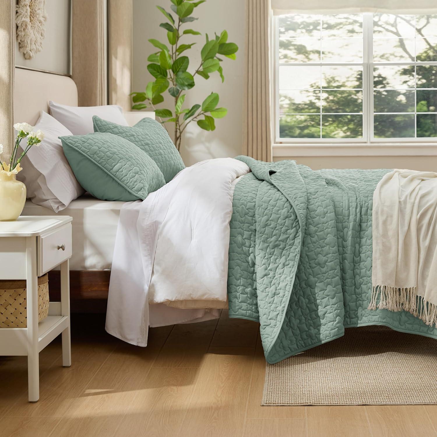 Bedsure Quilts Queen Size – Lightweight Bedspreads Queen Size with Classic Honeycomb Quilting, Soft Quilt Bedding Set, Taupe Comforter Set Coverlet for All Seasons with 2 Pillow Shams (90″ x 96″) | Skin-Friendly Soft, All-Season Comfort, Breathable, Lightweight, Machine Washable(08 – Sage Green)