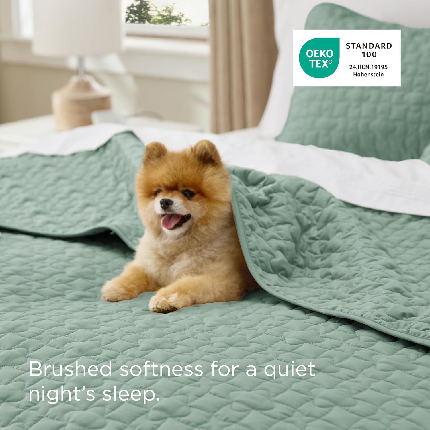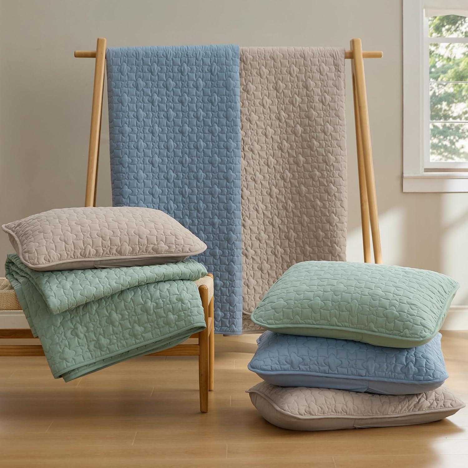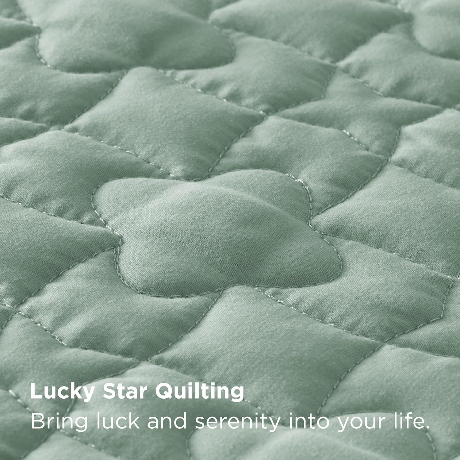 imageBedsure Quilts Queen Size  Lightweight Bedspreads Queen Size with Classic Honeycomb Quilting Soft Quilt Bedding Set Taupe Comforter Set Coverlet for All Seasons with 2 Pillow Shams 90 x 96  SkinFriendly Soft AllSeason Comfort Breathable Lightweight Machine Washable09  Sage Green Lucky Star