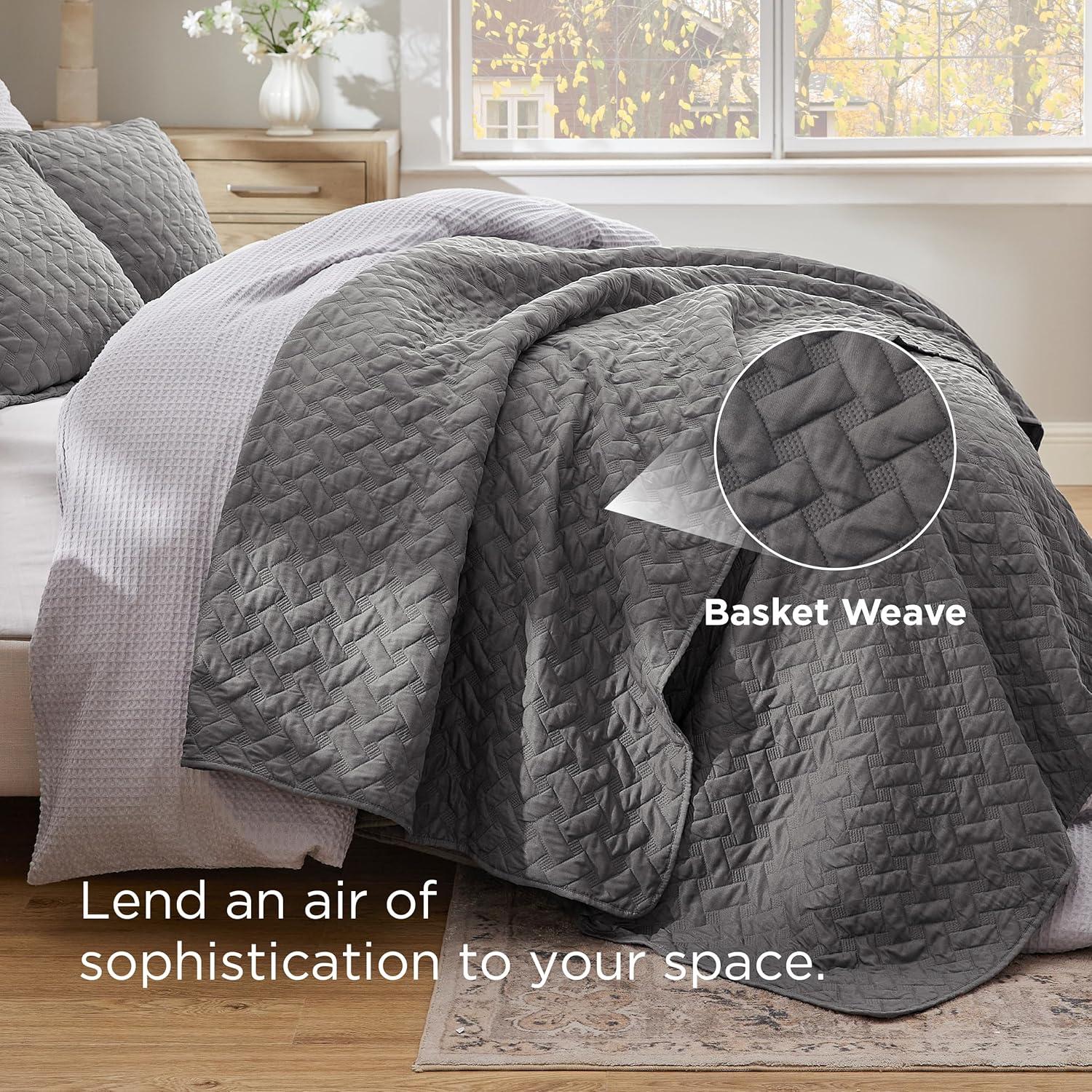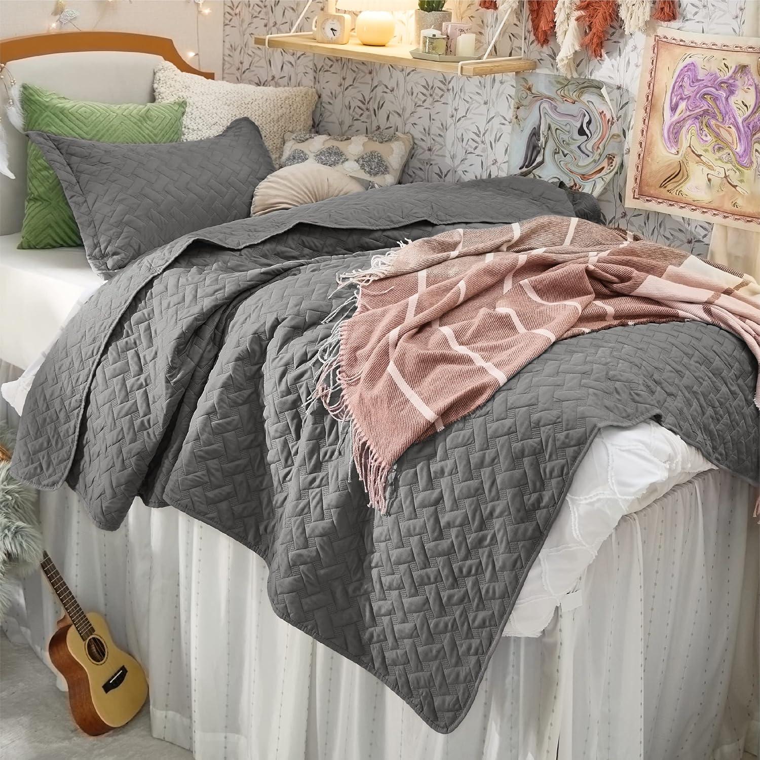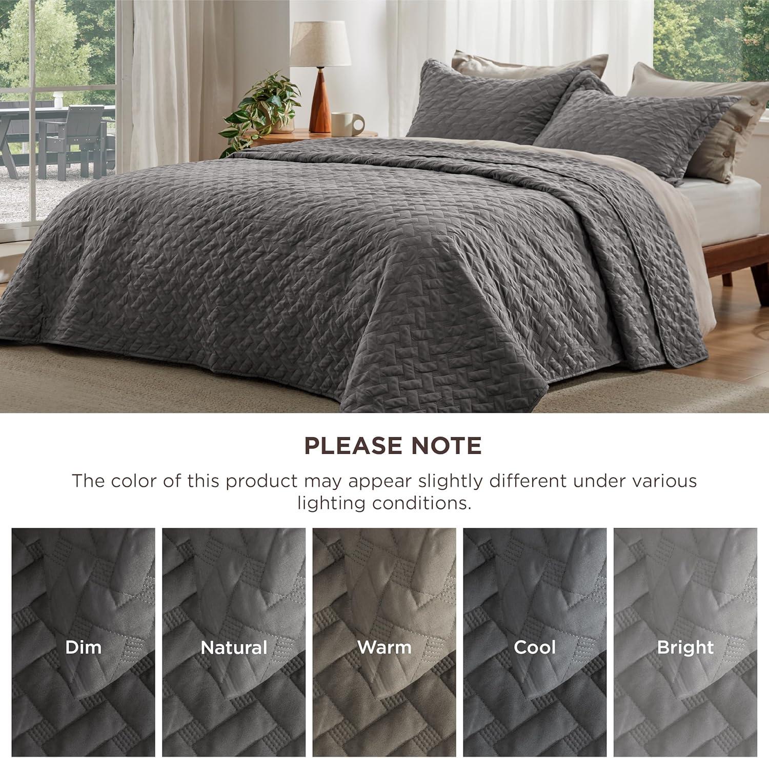 imageBedsure Quilts Queen Size  Lightweight Bedspreads Queen Size with Classic Honeycomb Quilting Soft Quilt Bedding Set Taupe Comforter Set Coverlet for All Seasons with 2 Pillow Shams 90 x 96  SkinFriendly Soft AllSeason Comfort Breathable Lightweight Machine Washable01  Grey