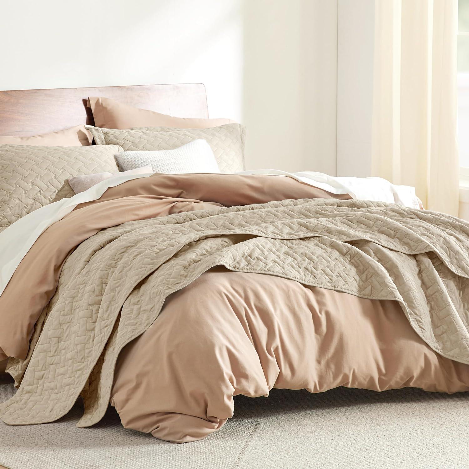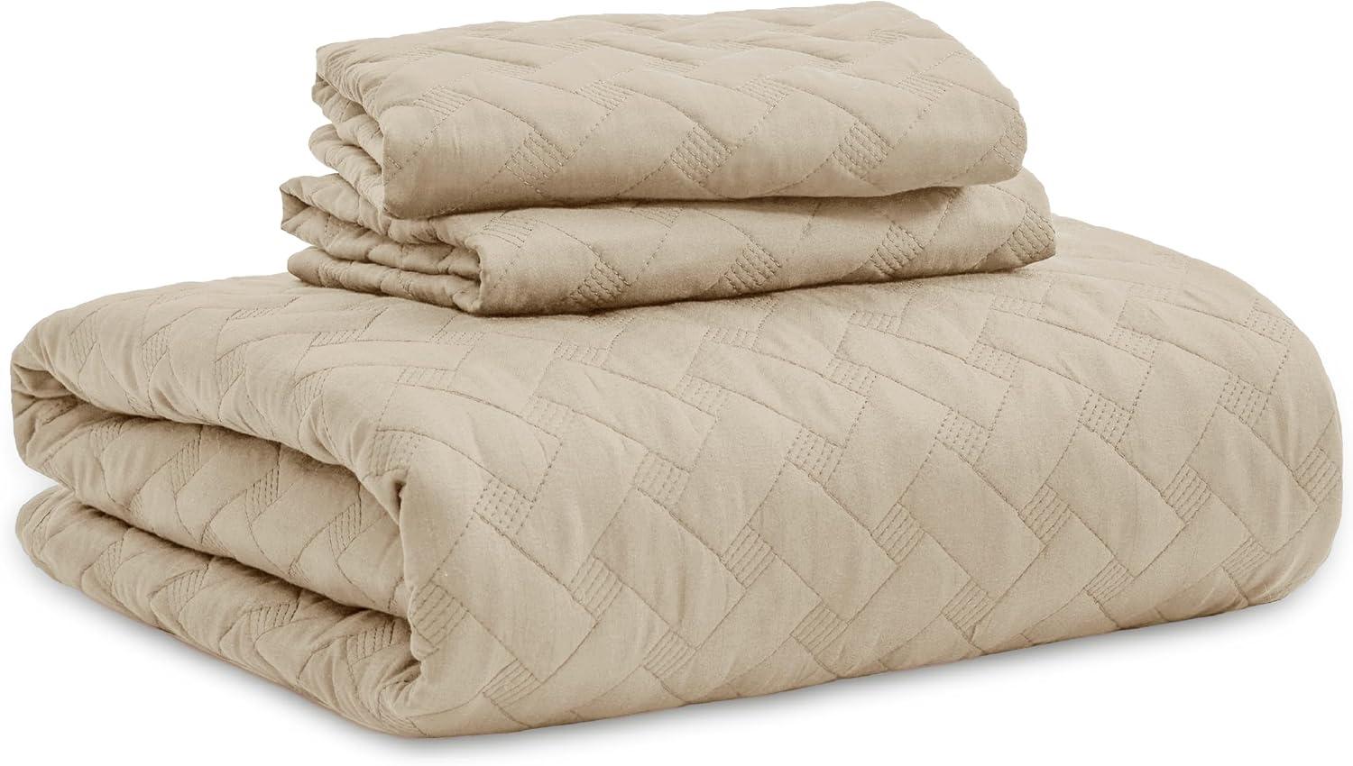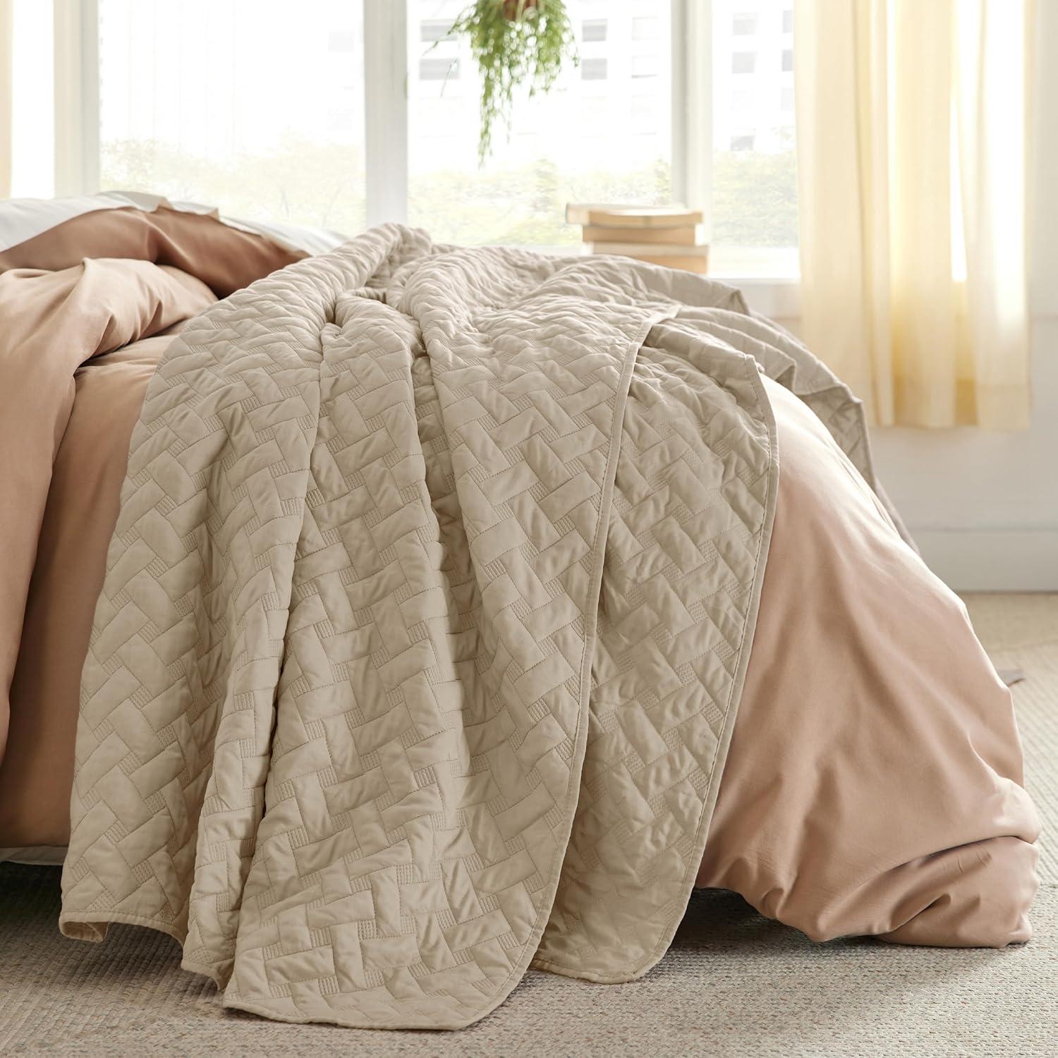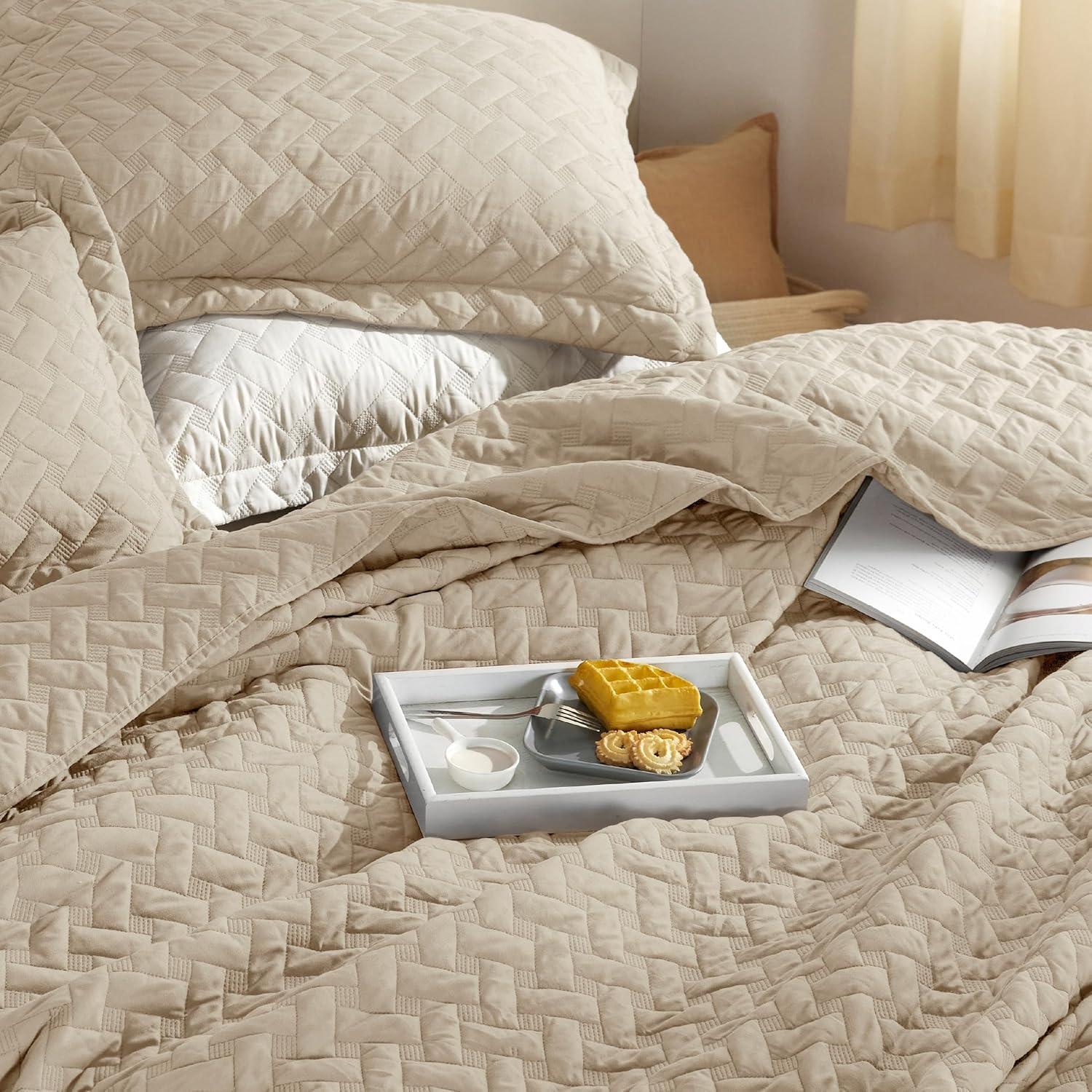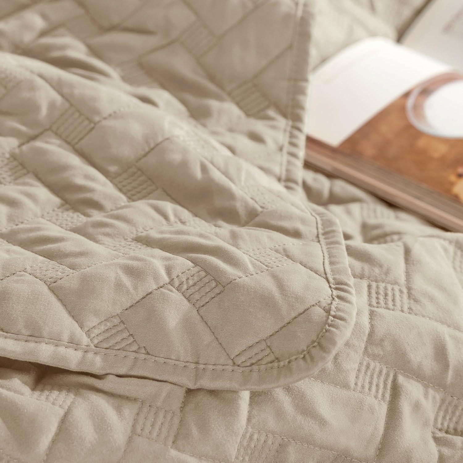imageBedsure Quilts Queen Size  Lightweight Bedspreads Queen Size with Classic Honeycomb Quilting Soft Quilt Bedding Set White Comforter Set Coverlet for All Seasons with 2 Pillow Shams 90 x 96  SkinFriendly Soft AllSeason Comfort Breathable Lightweight Machine Washable27  Light Khaki