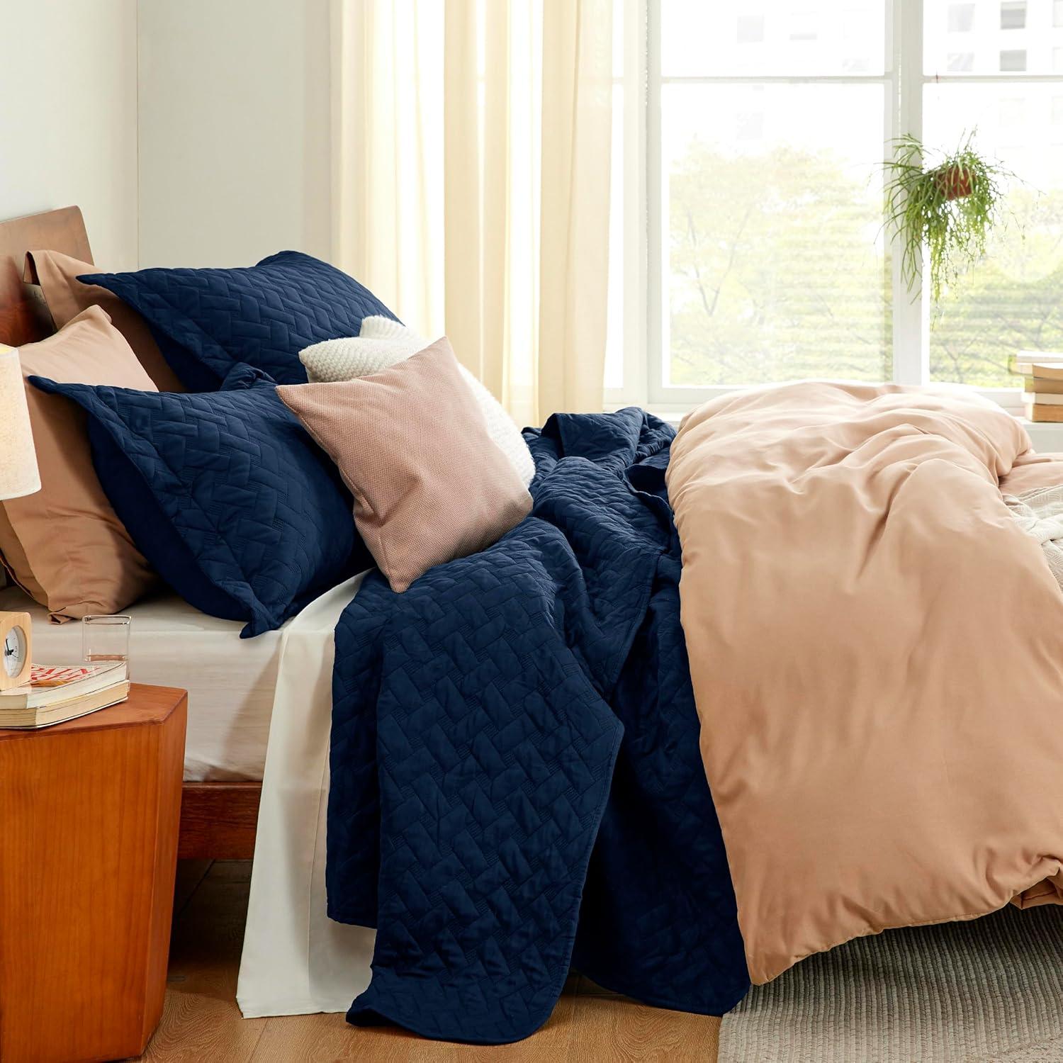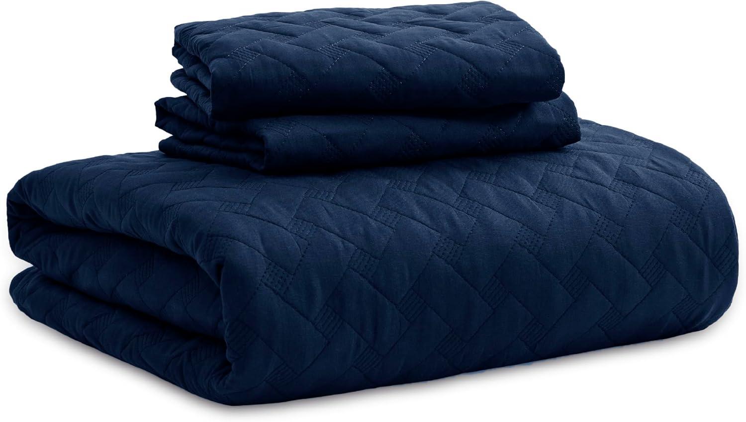 Bedsure Quilts Queen Size - Lightweight Bedspreads Queen Size with Classic Honeycomb Quilting, Soft Quilt Bedding Set, White Comforter Set Coverlet for All Seasons with 2 Pillow Shams (90" x 96") | Skin-Friendly Soft, All-Season Comfort, Breathable, Lightweight, Machine Washable(04 - Navy)