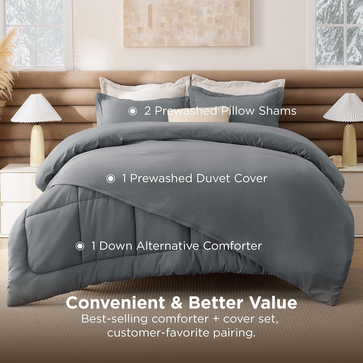 imageBedsure Removable Cover with Comforter Duvet Insert Queen  4 Pieces White Prewashed Soft Bedding Set for All Seasons Use Includes 1 Duvet Cover 1 Comforter 2 Pillow ShamsDark Gray