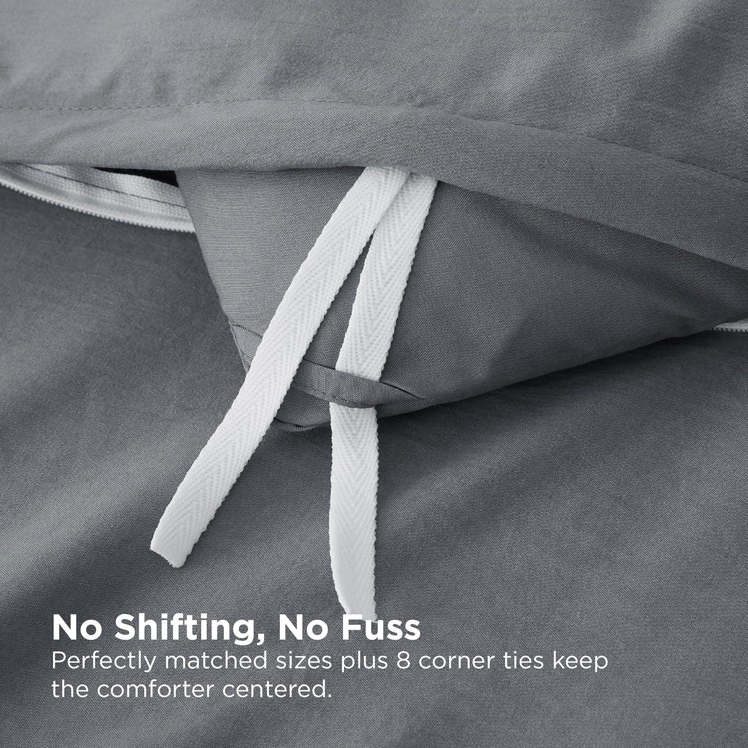 Snug Fit, Smart Details: Custom-sized duvet cover and duvet insert fit seamlessly together with 8 corner ties to keep everything in place—no bunching, no shifting, just pure comfort all night long