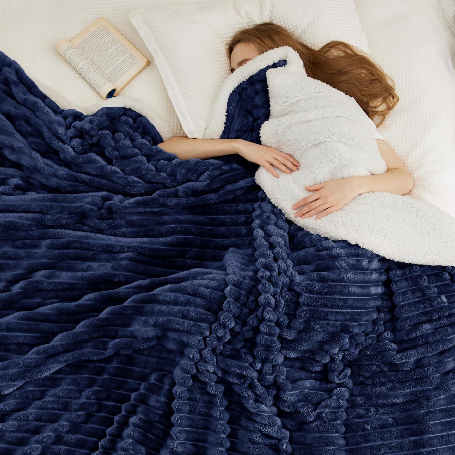 Bedsure Sherpa Throw Blanket for Couch – Super Soft, Cozy Fleece Thick Warm Blanket for Winter, GentleSoft Plush & Fluffy Throw Gift for Women, Room Decor, Grey, 50×60 Inches(05 – Navy Blue)