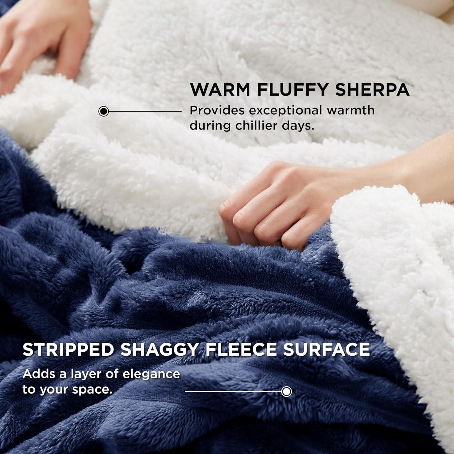 Bedsure Sherpa Throw Blanket for Couch - Super Soft, Cozy Fleece Thick Warm Blanket for Winter, GentleSoft Plush & Fluffy Throw Gift for Women, Room Decor, Grey, 50x60 Inches(05 - Navy Blue)