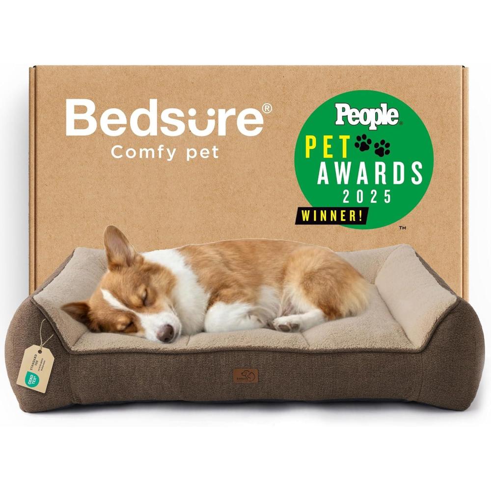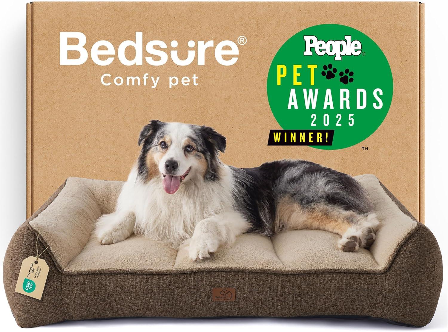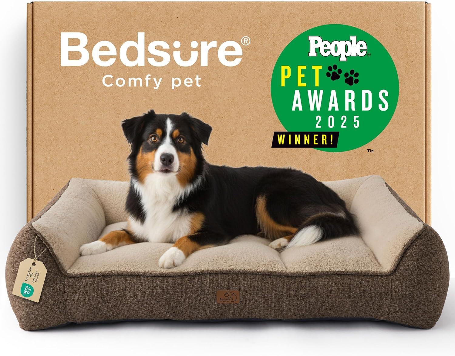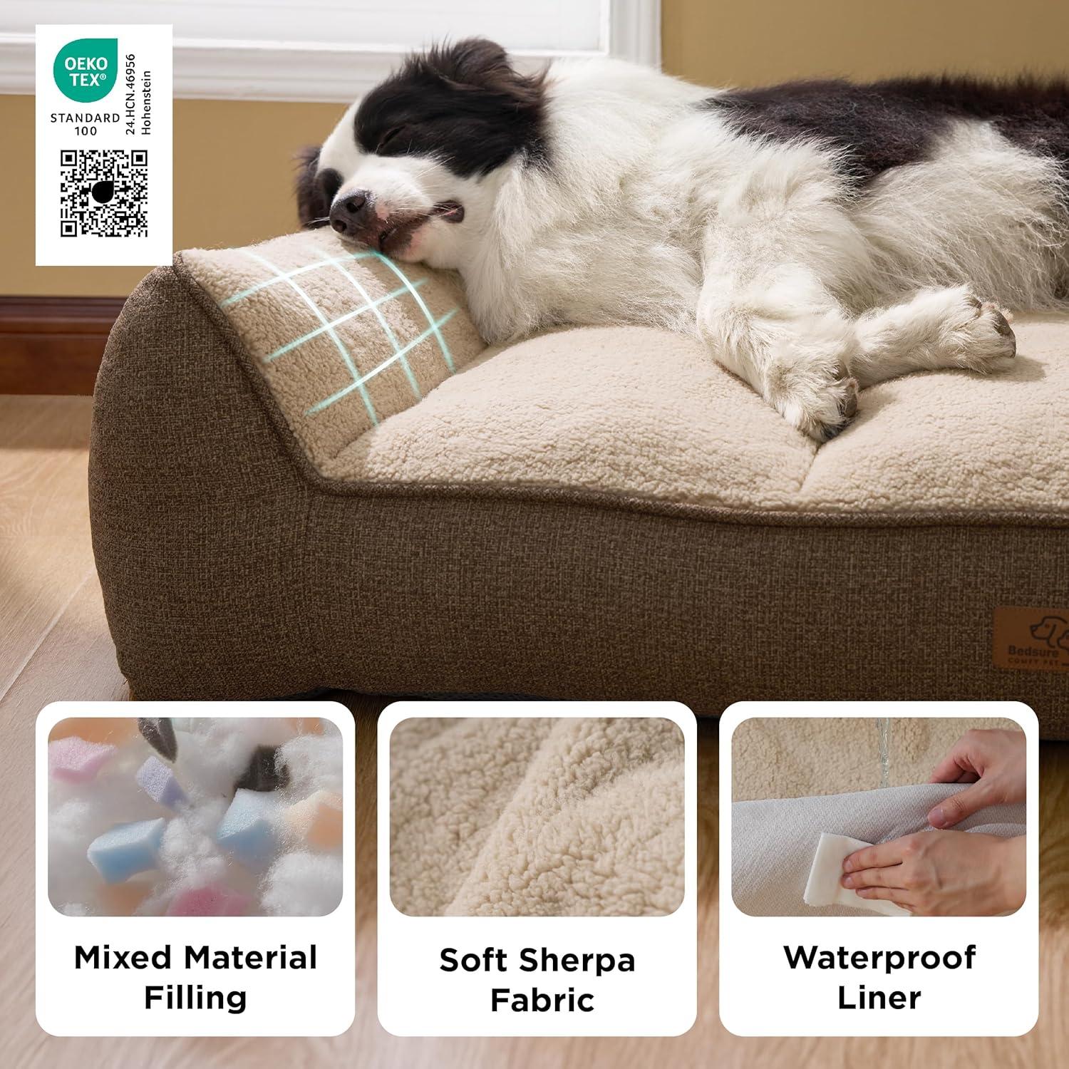Bedsure SupportMax™ XL Pro Orthopedic Dog Beds Large Sized Dog - Extra Thick Supportive Dogs Couch with Waterproof Washable Cover, Extra Large Comfort Pet Sofa with Soft Sherpa & Nonskid Bottom, Beige(Brown)